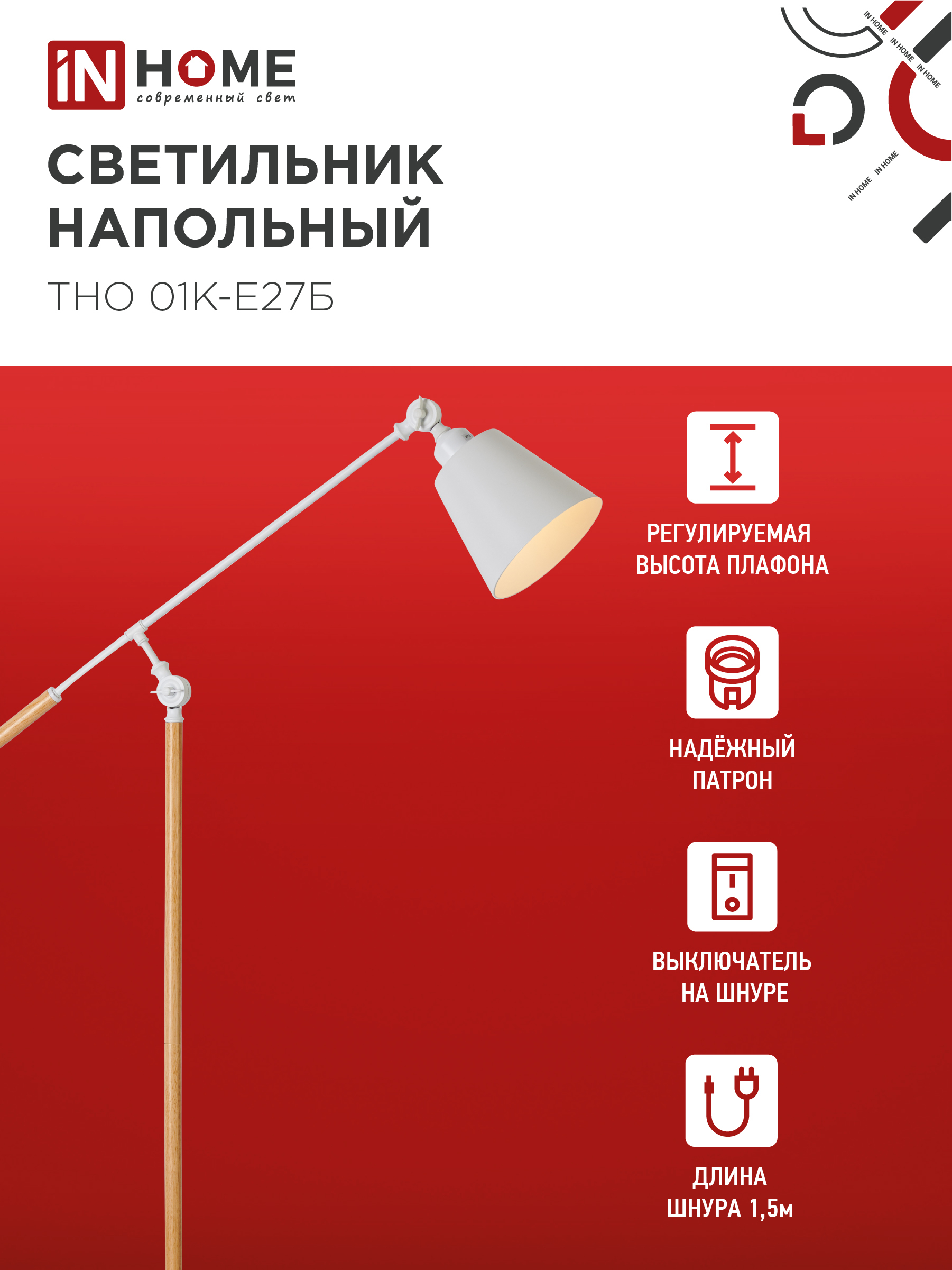 Светильник напольный под лампу ТНО 01К-Е27Б 230В белый плафон, белый корпус IN HOME