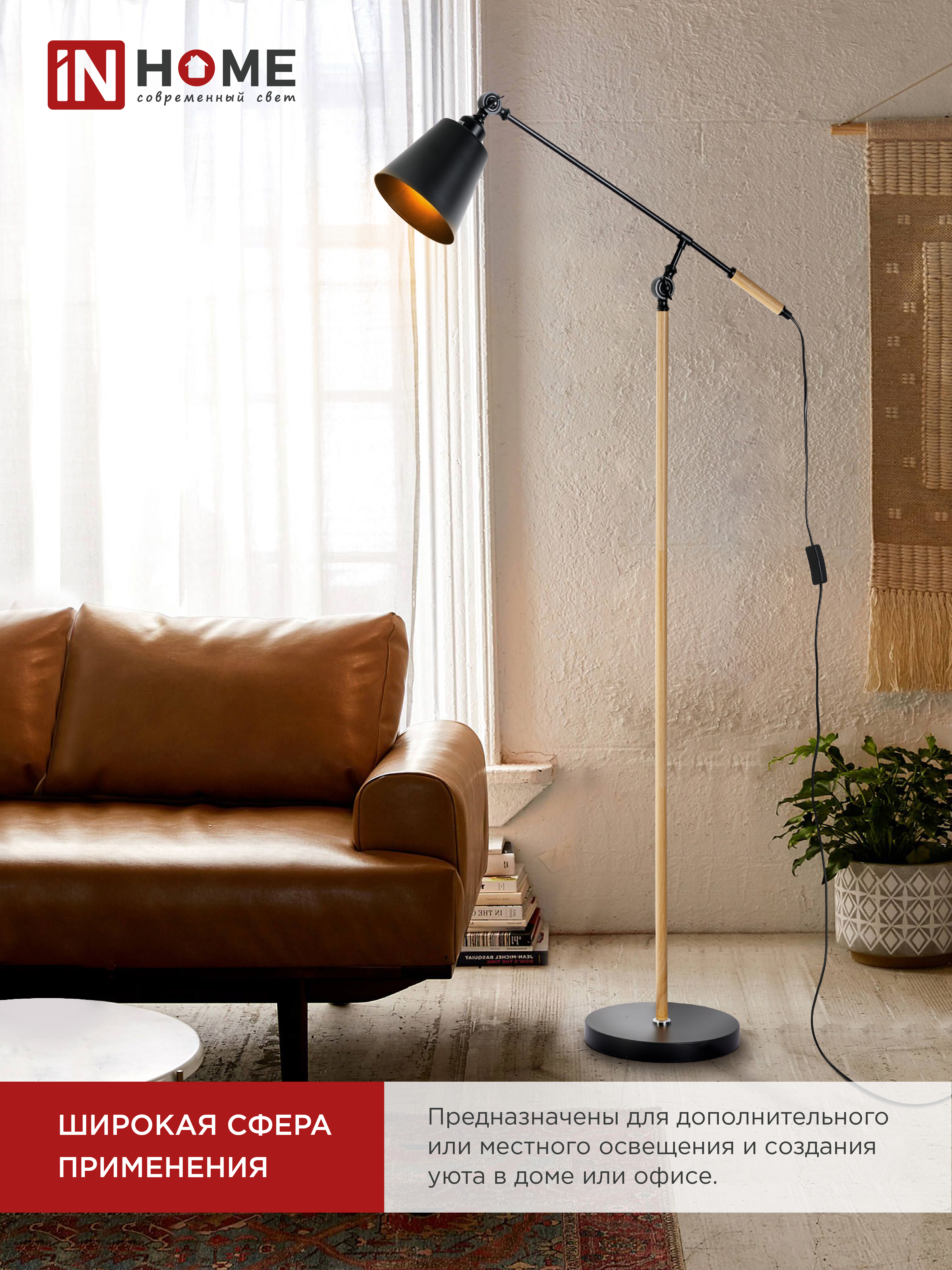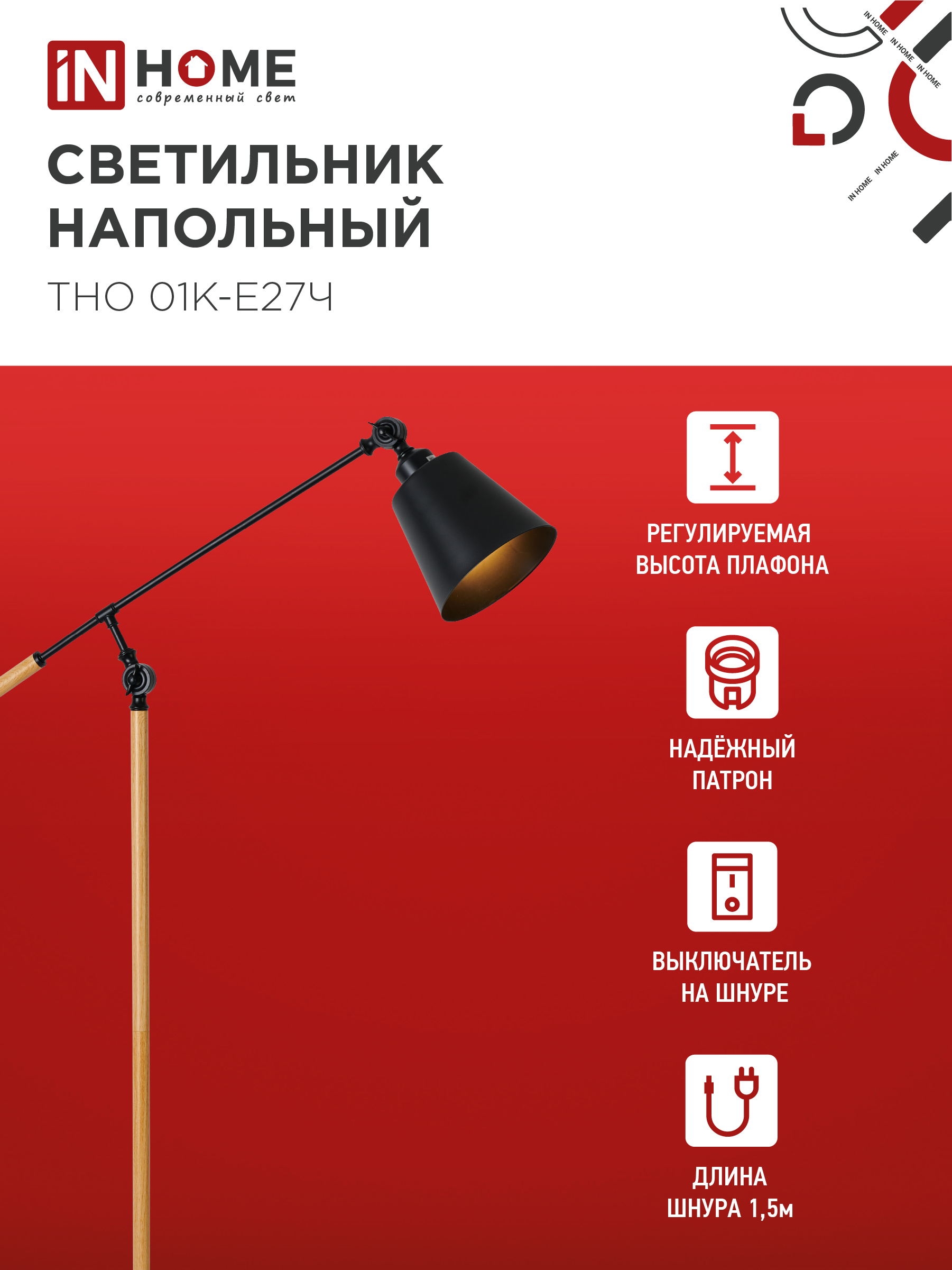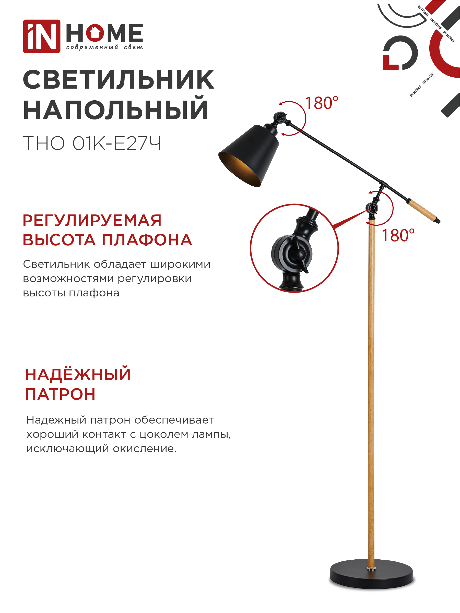 Светильник напольный под лампу ТНО 01К-Е27Ч 230В черный плафон, черный корпус IN HOME