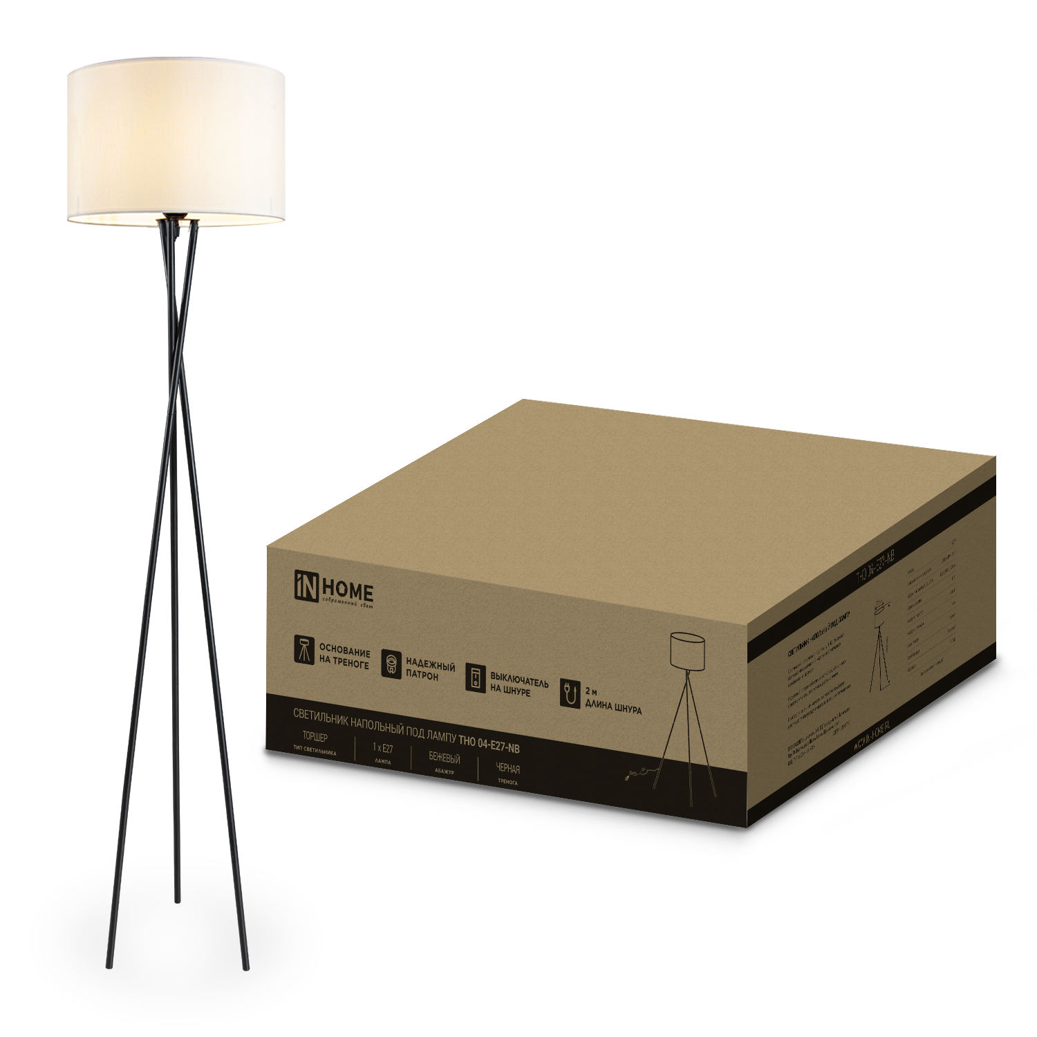 Светильник напольный под лампу ТНО 04-Е27-NB 230В бежевый абажур, черная тренога IN HOME