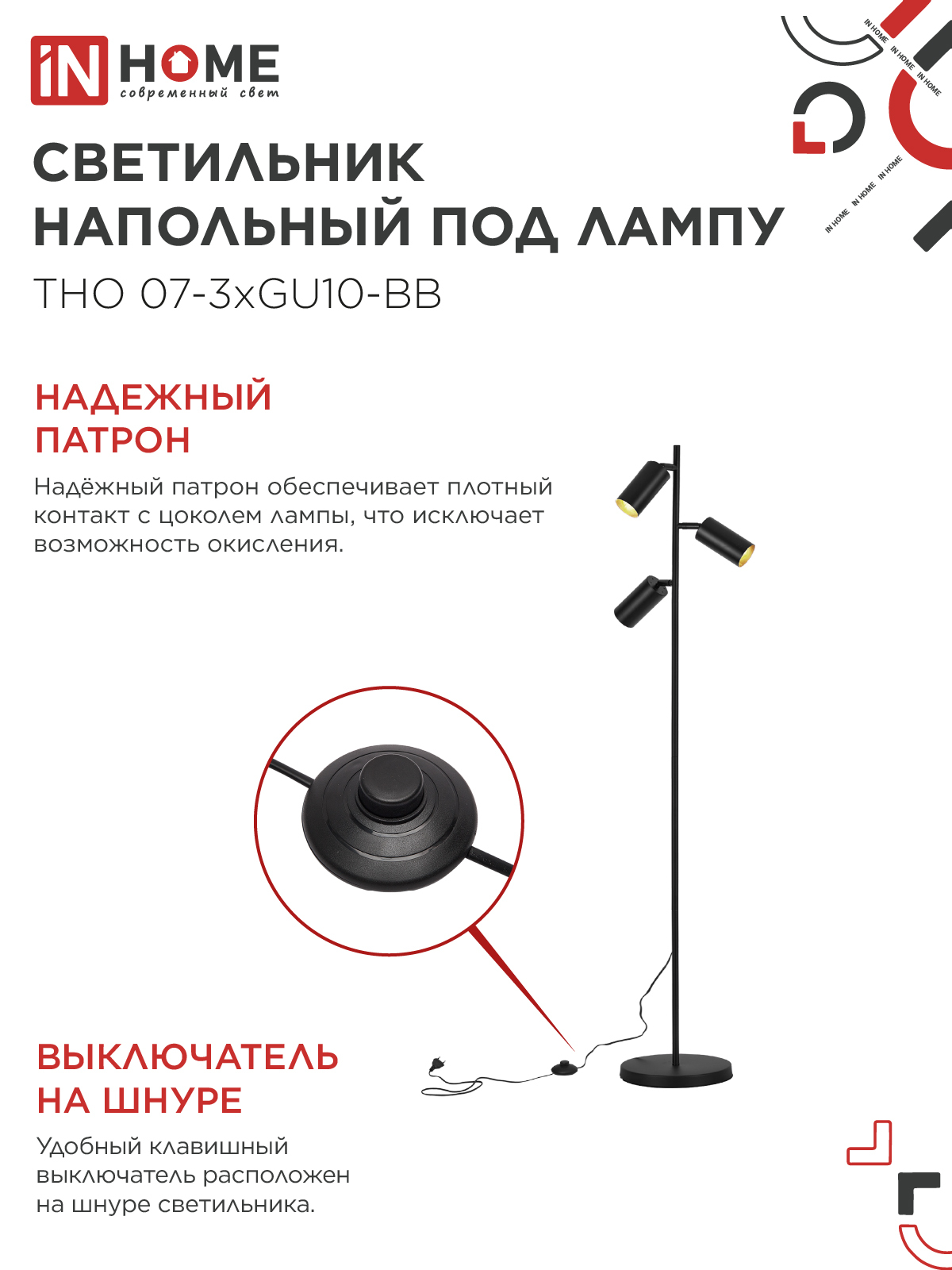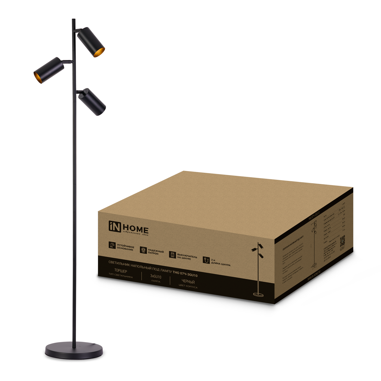 Светильник напольный под лампу ТНО 07-3хGU10-BB 230В черный плафон, черный корпус IN HOME