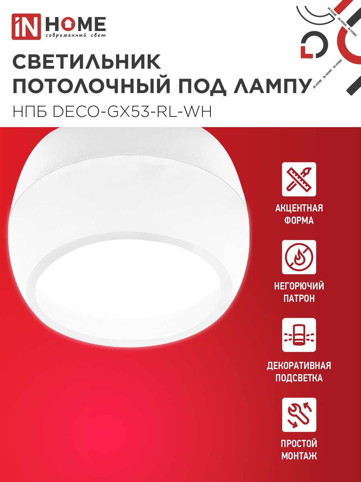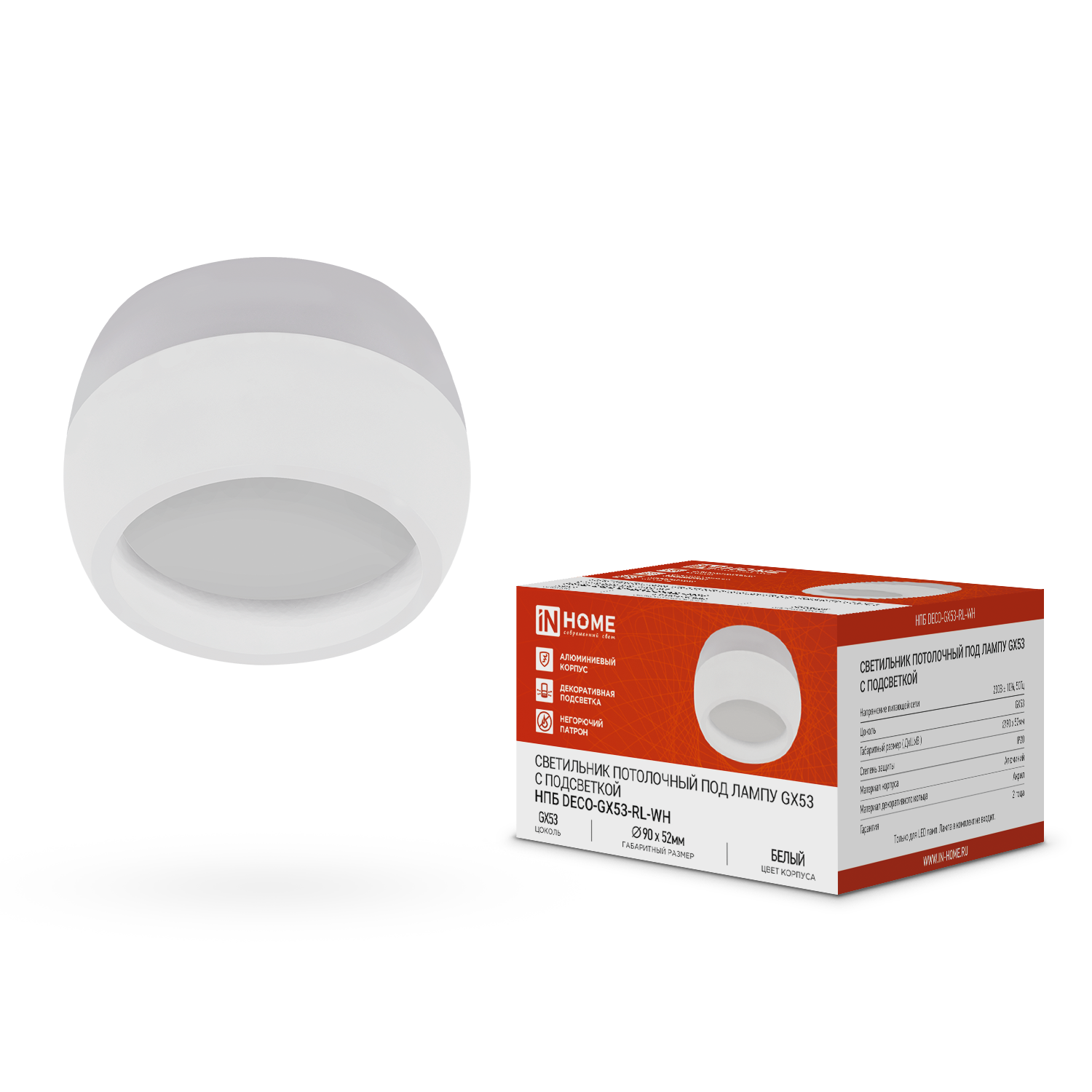 Светильник потолочный НПБ DECO-GX53-RL-WH под лампу GX53 90х52мм белый IN HOME