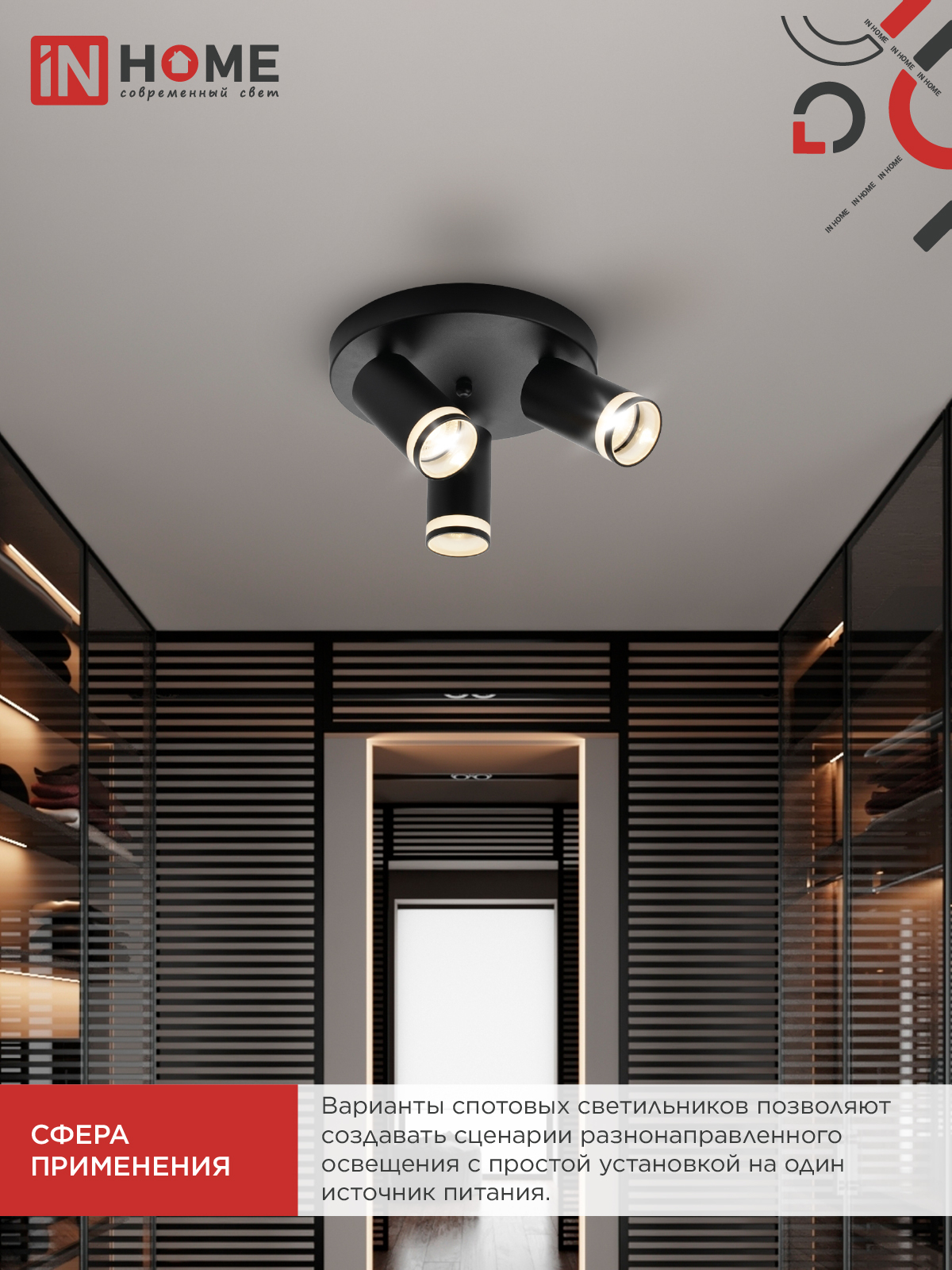Светильник потолочный НПБ СПОТ-3RxGU10-AR-BL под GU10 с круглой базой черный IN HOME