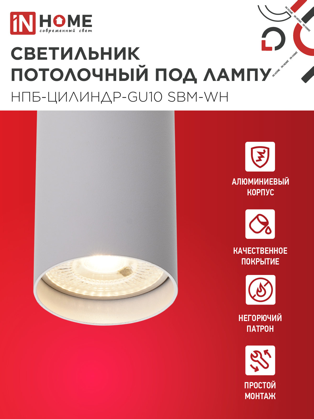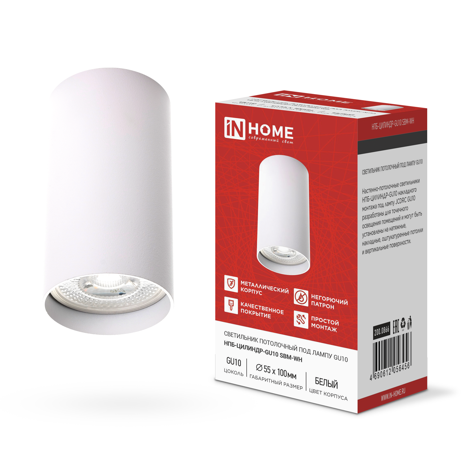 Светильник потолочный НПБ-ЦИЛИНДР-GU10 SBM-WH под GU10 55х100мм белый IN HOME