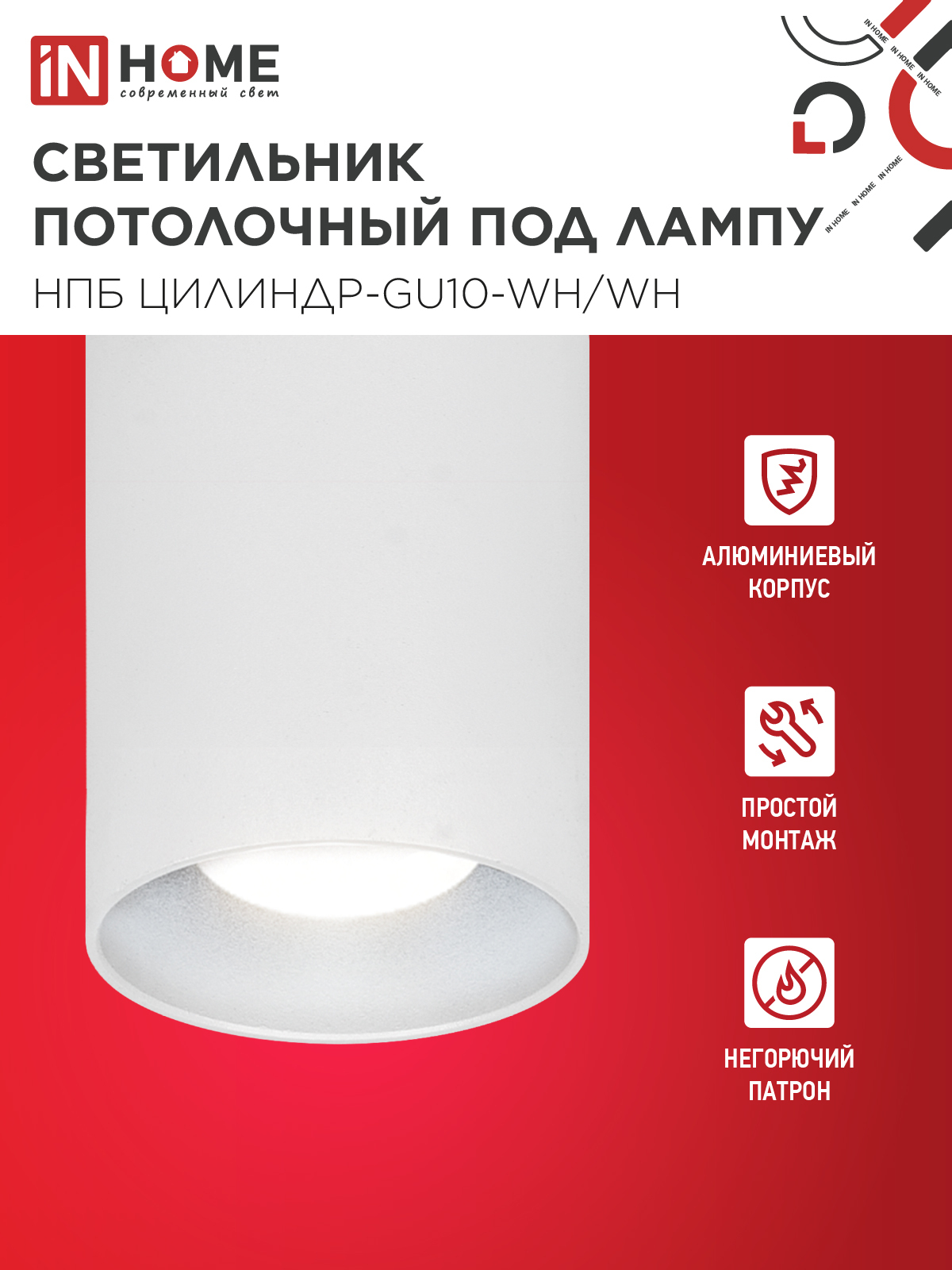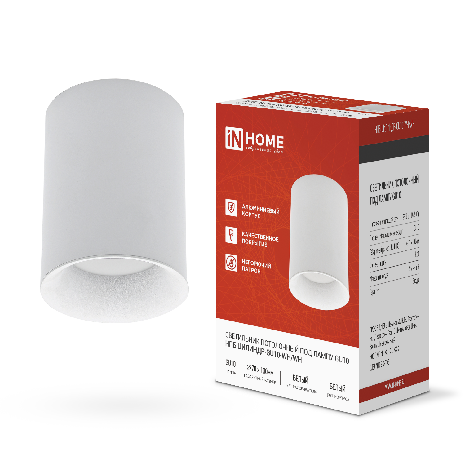 Светильник потолочный НПБ ЦИЛИНДР-GU10-WH/WH под лампу GU10 70x100мм белый IN HOME