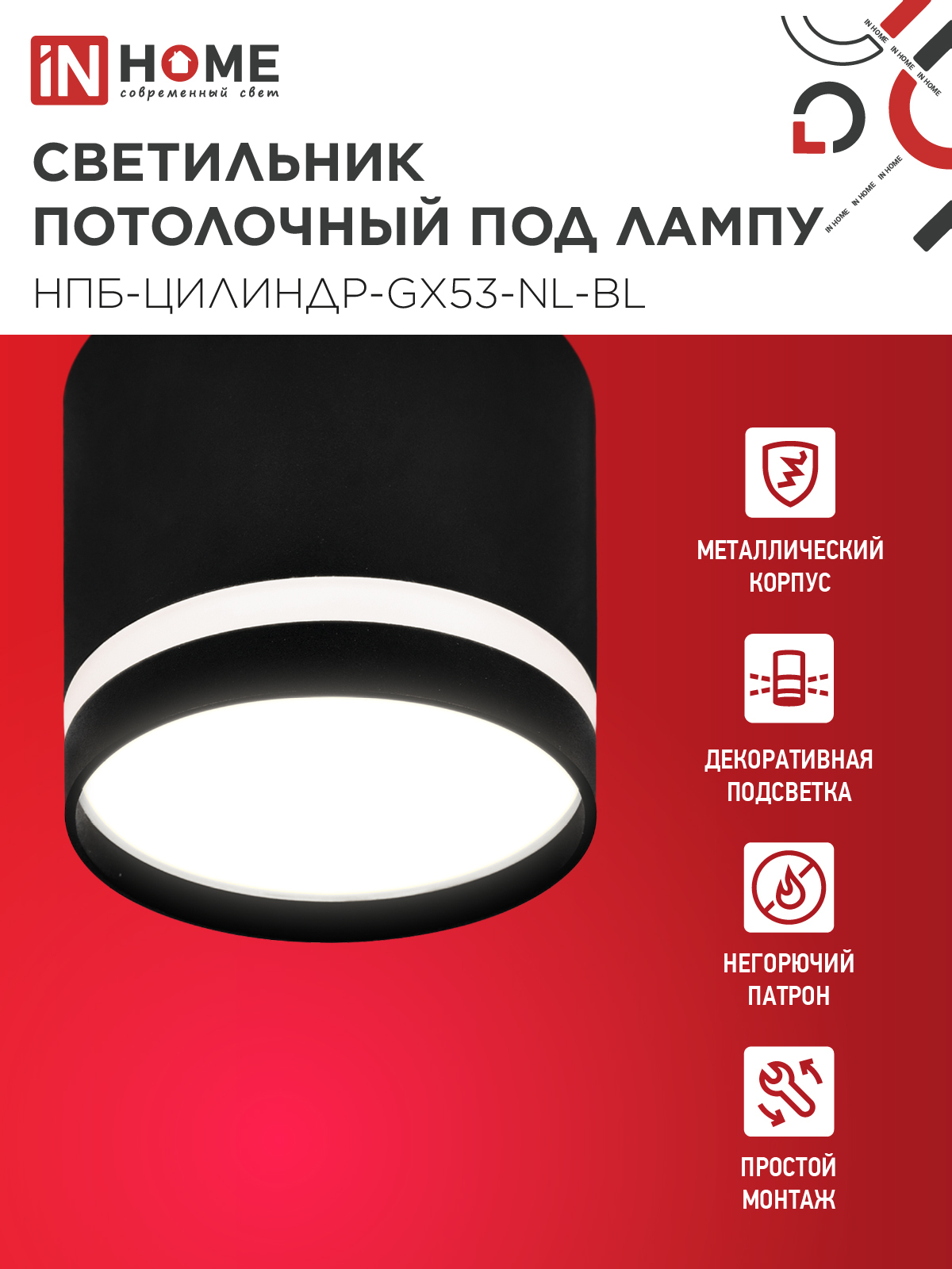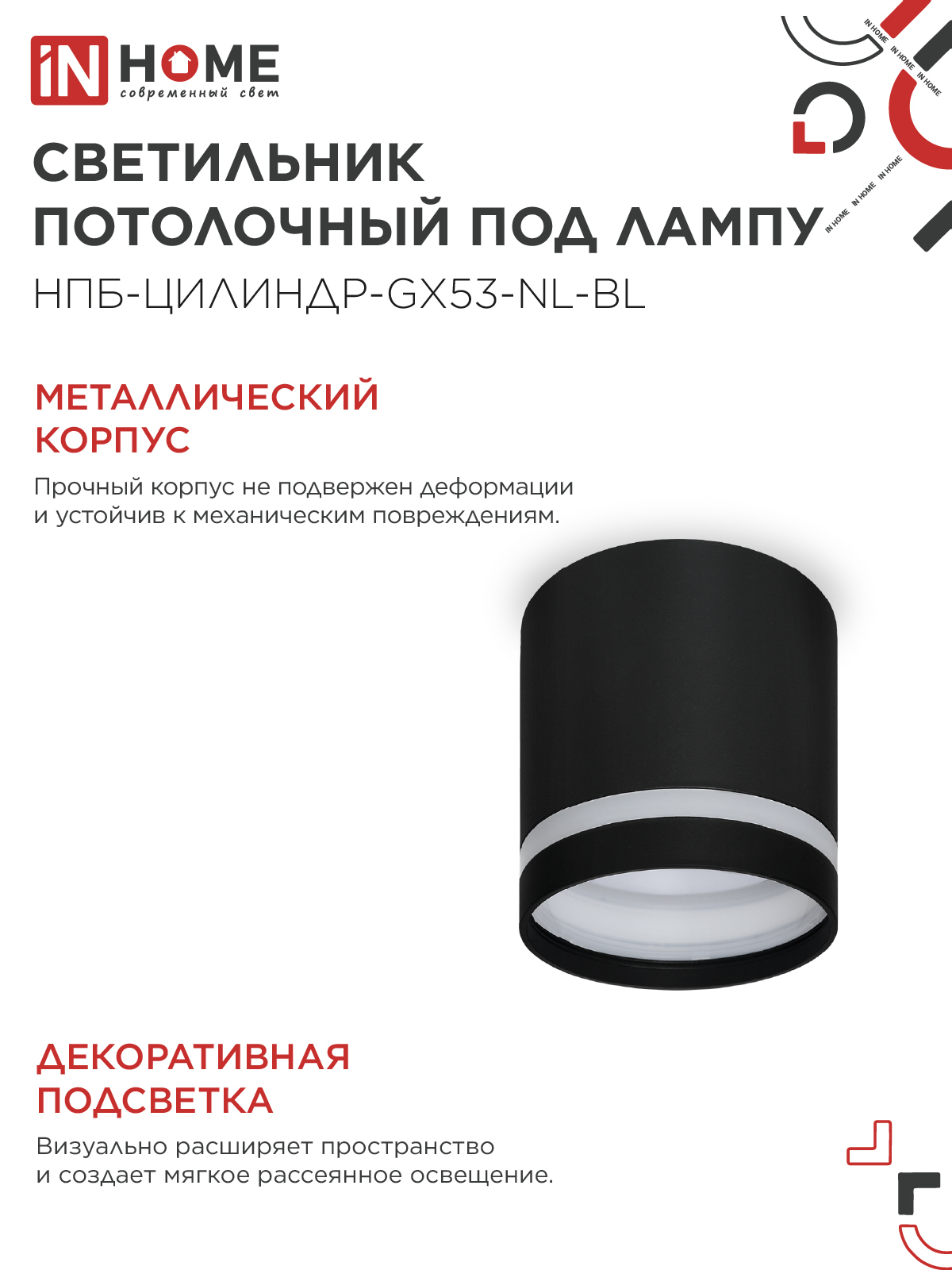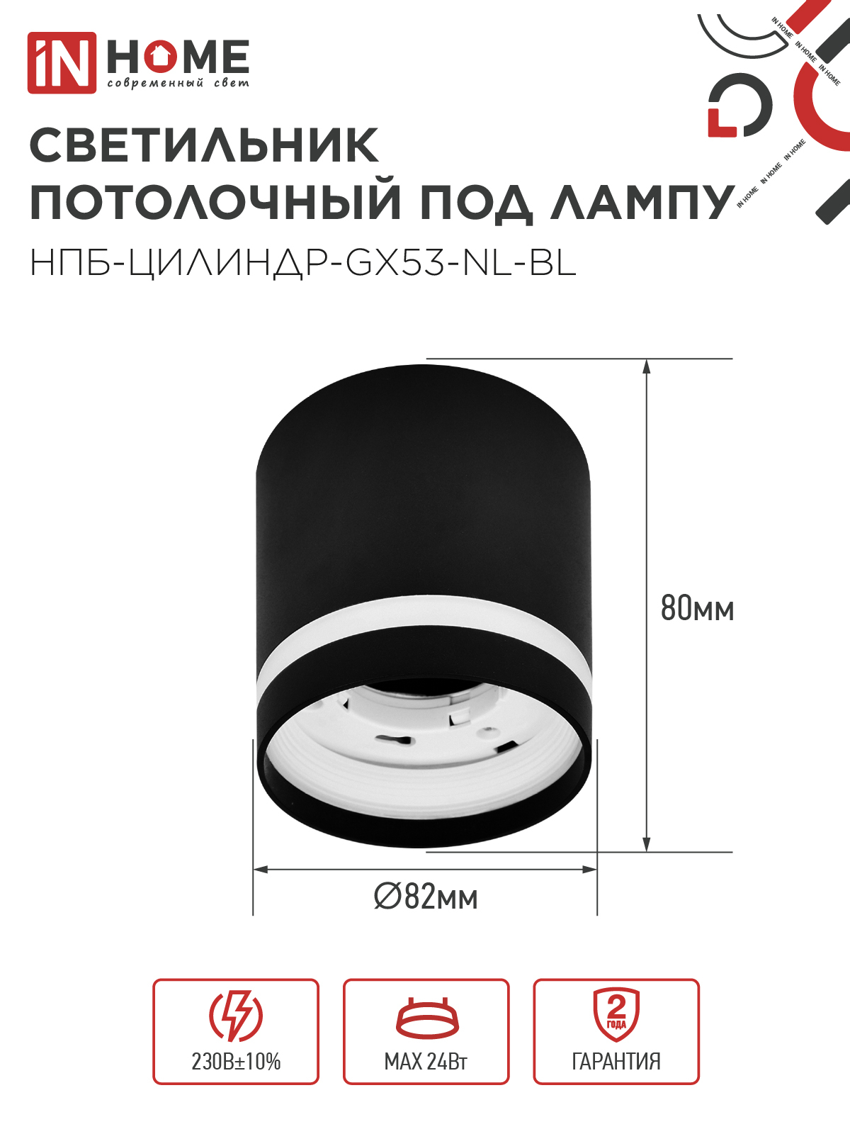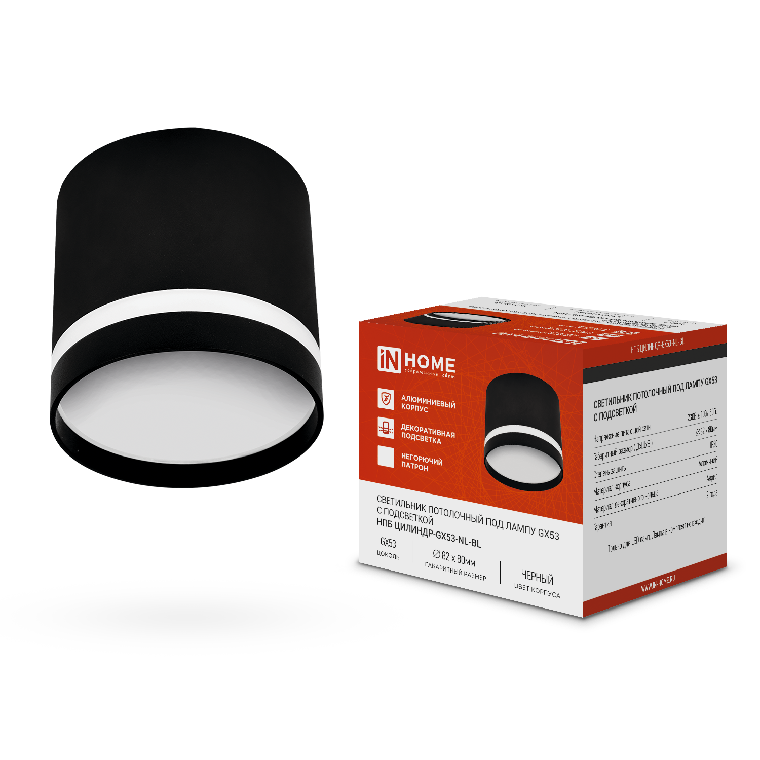 Светильник потолочный НПБ ЦИЛИНДР-GX53-NL-BL под лампу GX53 82х80мм черный IN HOME