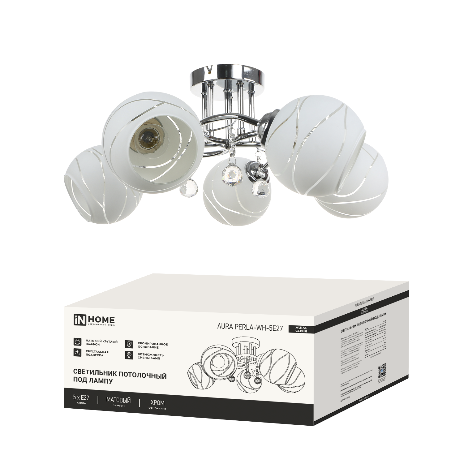 Светильник потолочный под лампу AURA PERLA-WH-5E27 5хЕ27 матовый плафон хромированный корпус IN HOME