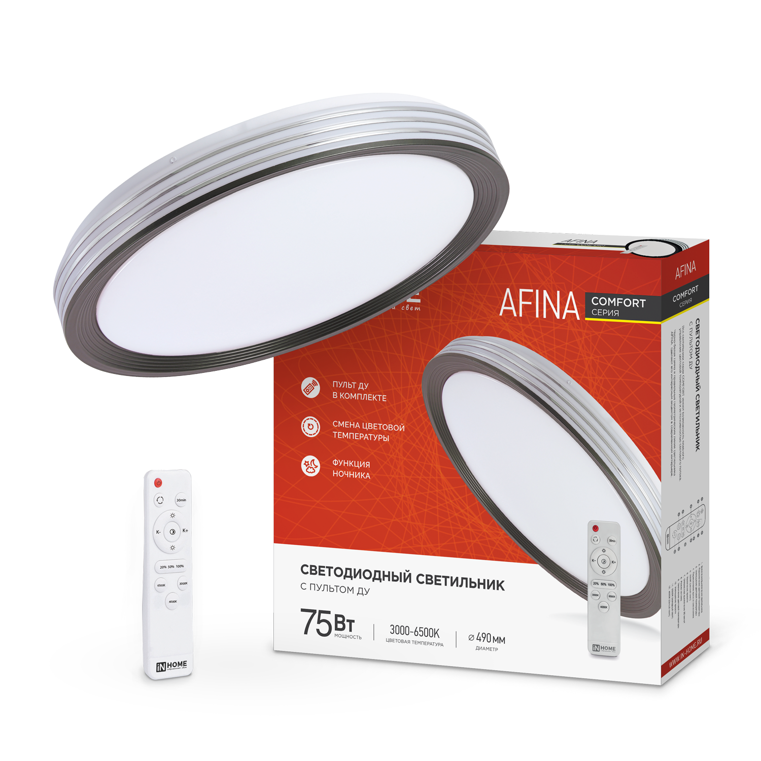 Светильник светодиодный COMFORT AFINA 75Вт 230В 3000-6500K 6000Лм 500x80мм с пультом ДУ IN HOME