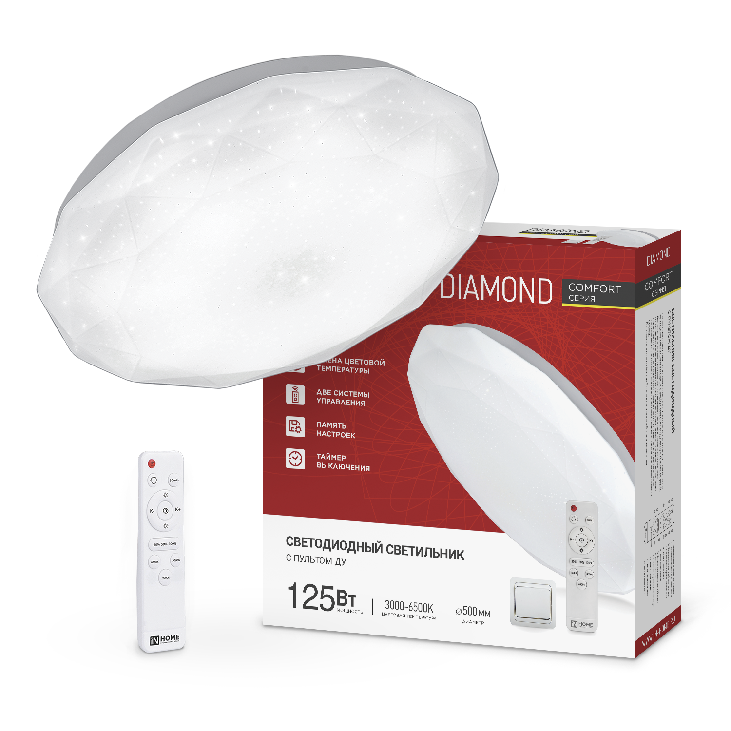 Светильник светодиодный COMFORT DIAMOND 125Вт 230В 3000-6500K 10000Лм 500x105мм с пультом ДУ IN HOME