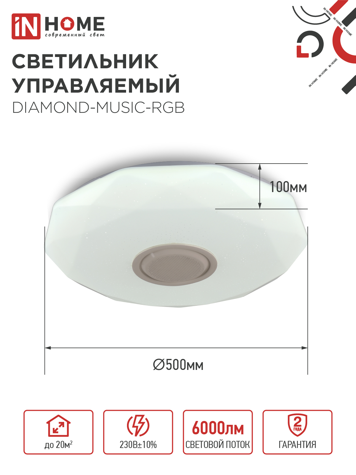 Номинальный срок службы светильника - не менее 30 000 часов, а гарантия на него составляет 2 года. Светильник светодиодный COMFORT DIAMOND-MUSIC-RGB - это не только функциональный источник света, но и стильный элемент декора, который украсит любое помещение и создаст уютную атмосферу.
