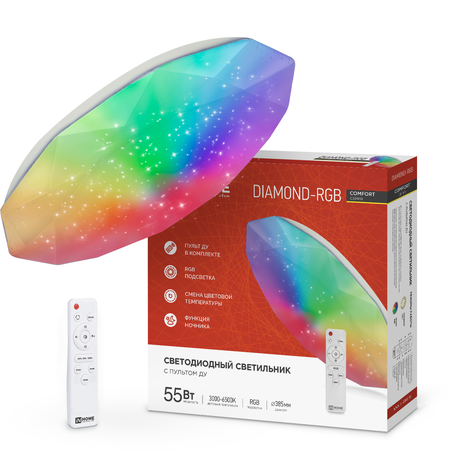 Светильник светодиодный COMFORT DIAMOND-RGB 55Вт 230В 3000-6500K 4400Лм 385x75мм с пультом дистанционного управления IN HOME