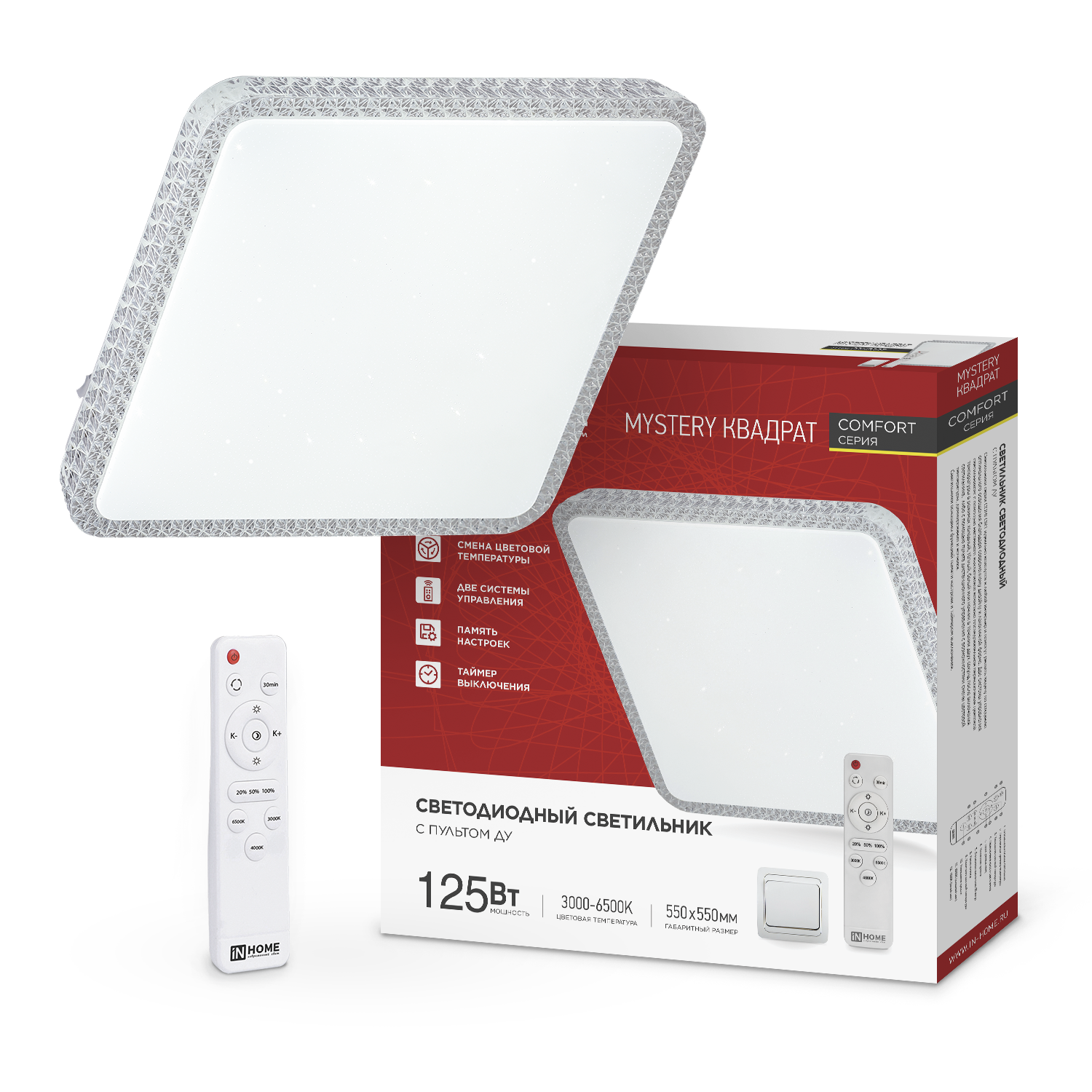 Светильник светодиодный COMFORT MYSTERY КВАДРАТ 125Вт 230В 3000-6500K 10000Лм 550x80мм с пультом ДУ IN HOME