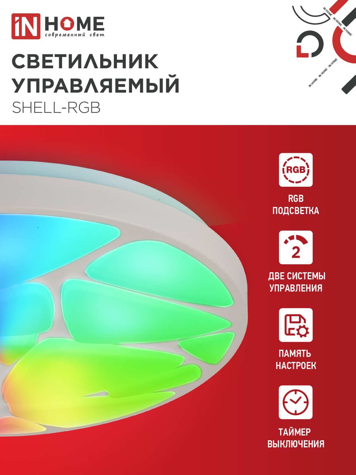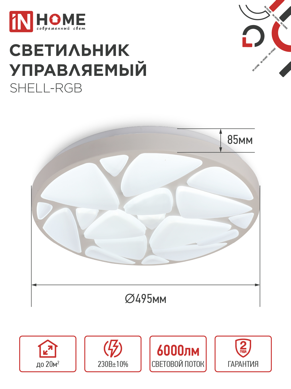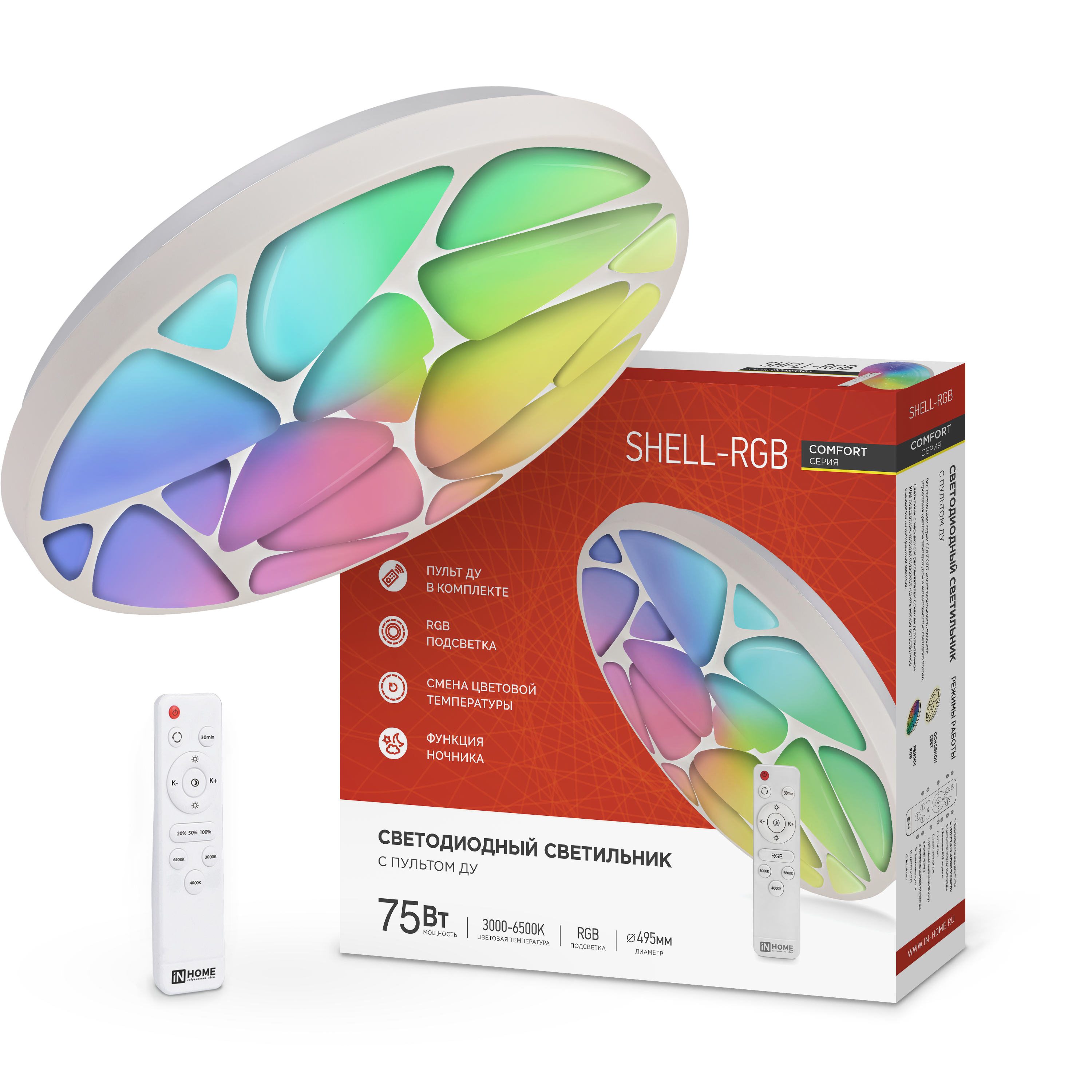 Светильник светодиодный потолочный накладной COMFORT SHELL-RGB 75Вт 230В 3000-6500K 6000Лм 495x85мм с пультом дистанционного управления IN HOME - это инновационный и функциональный светильник, который сделает ваш дом комфортным и уютным.