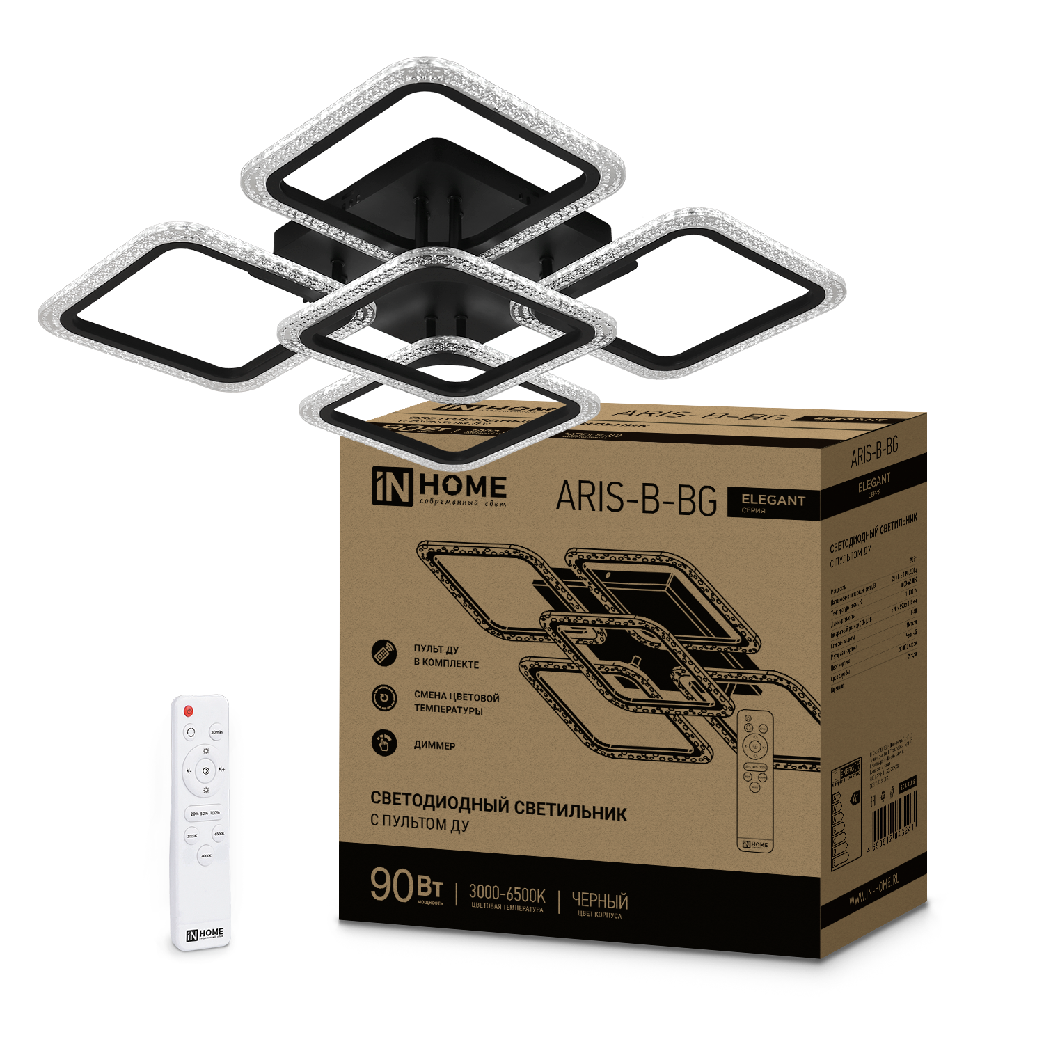 Светильник светодиодный ELEGANT ARIS-B-ВG 90Вт 230В 3000-6500K 7000Лм 557х557х115мм пульт ДУ черный IN HOME