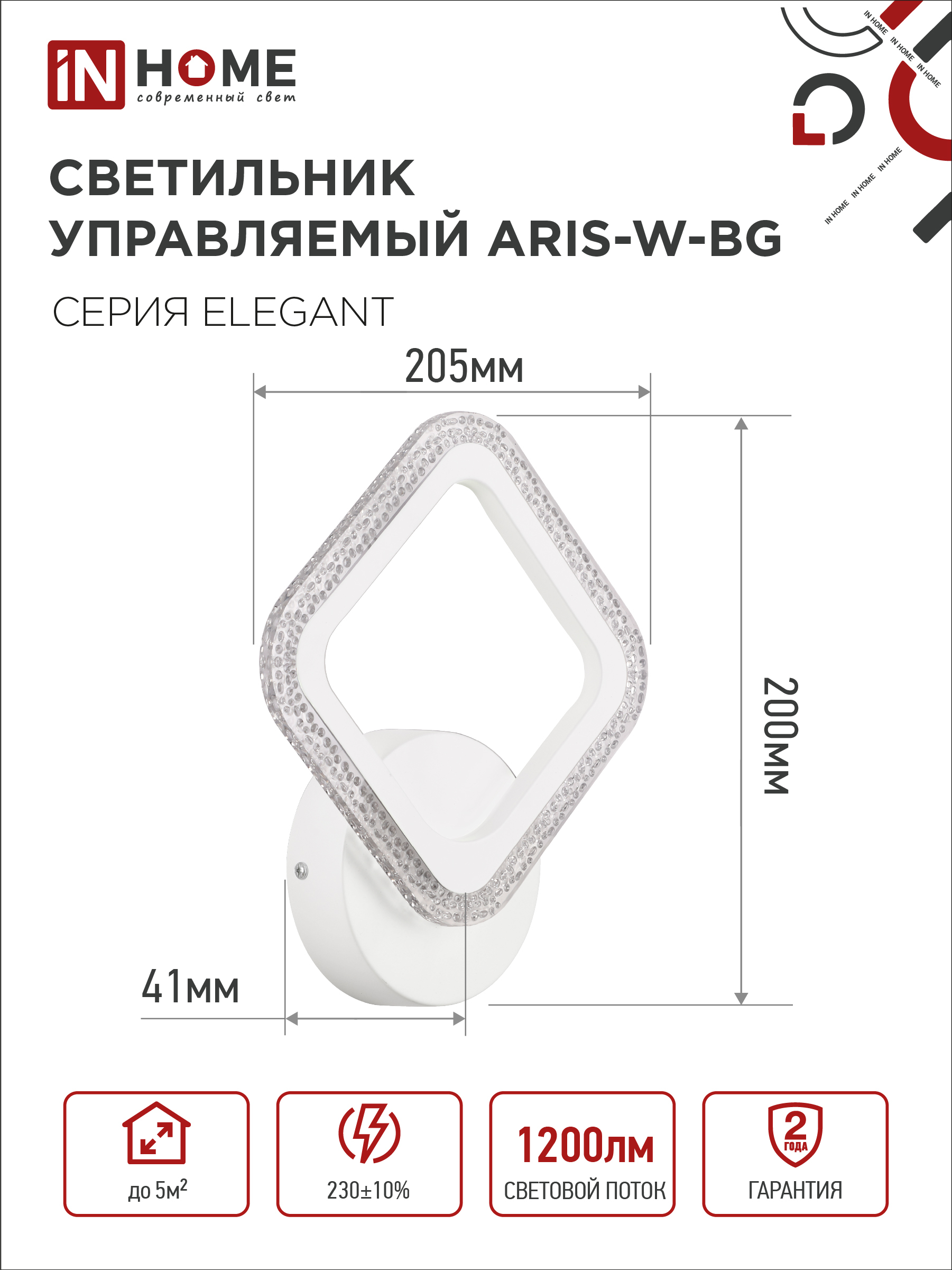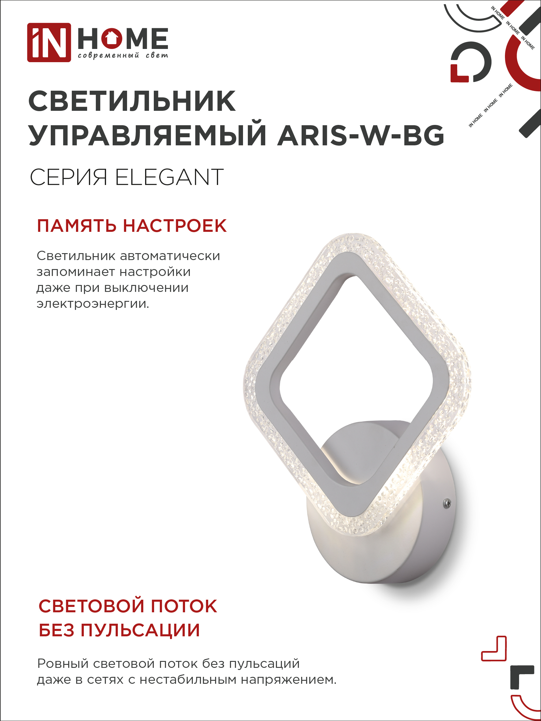 Светильник светодиодный ELEGANT ARIS-W-BG 15Вт 230В 3000-6500K 1200Лм STEP COLOR белый IN HOME