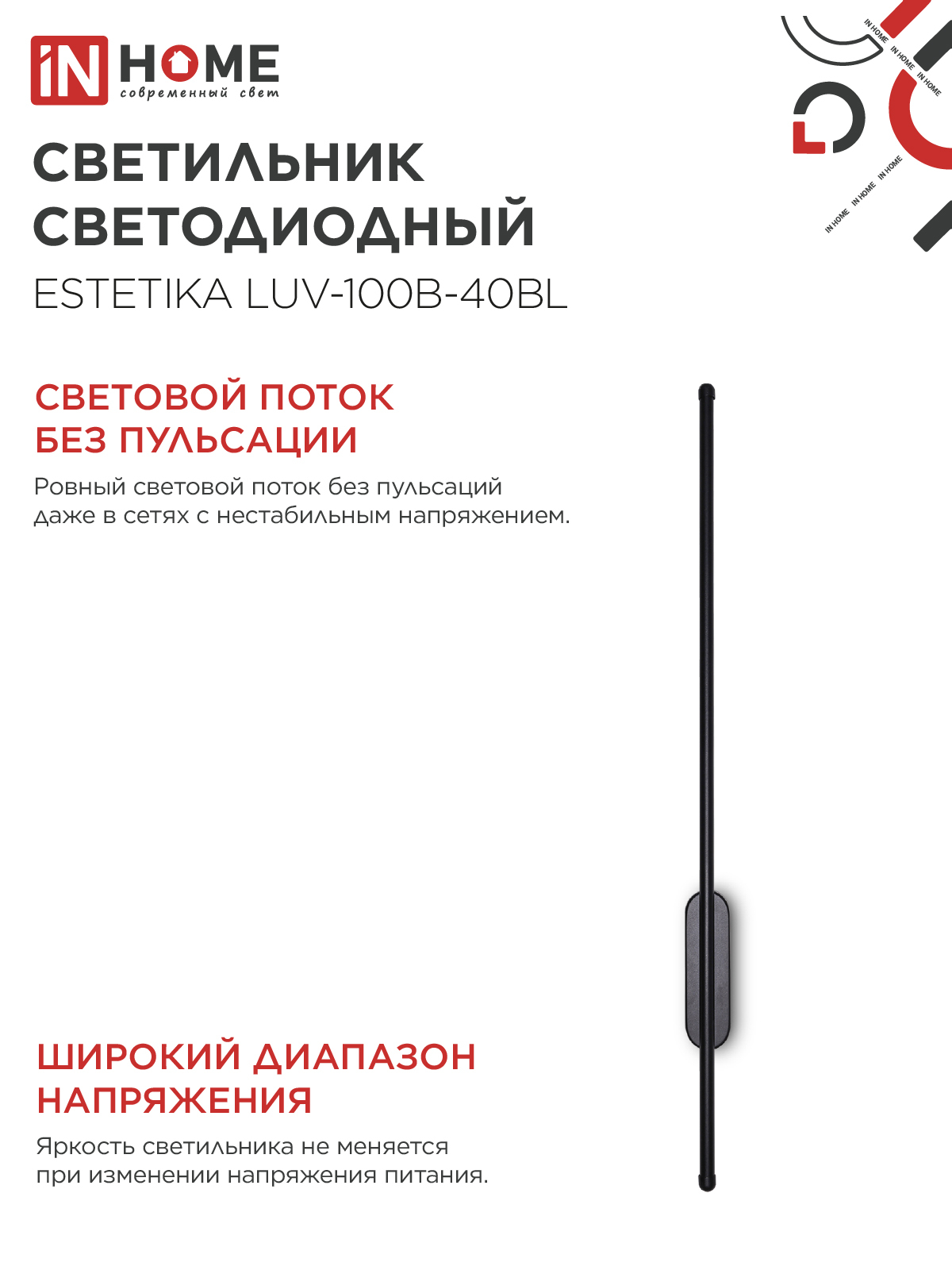 Светильник светодиодный ESTETIKA LUV-100B-40BL 20Вт 230В 4000K 1400Лм 1000х50x25 черный IN HOME