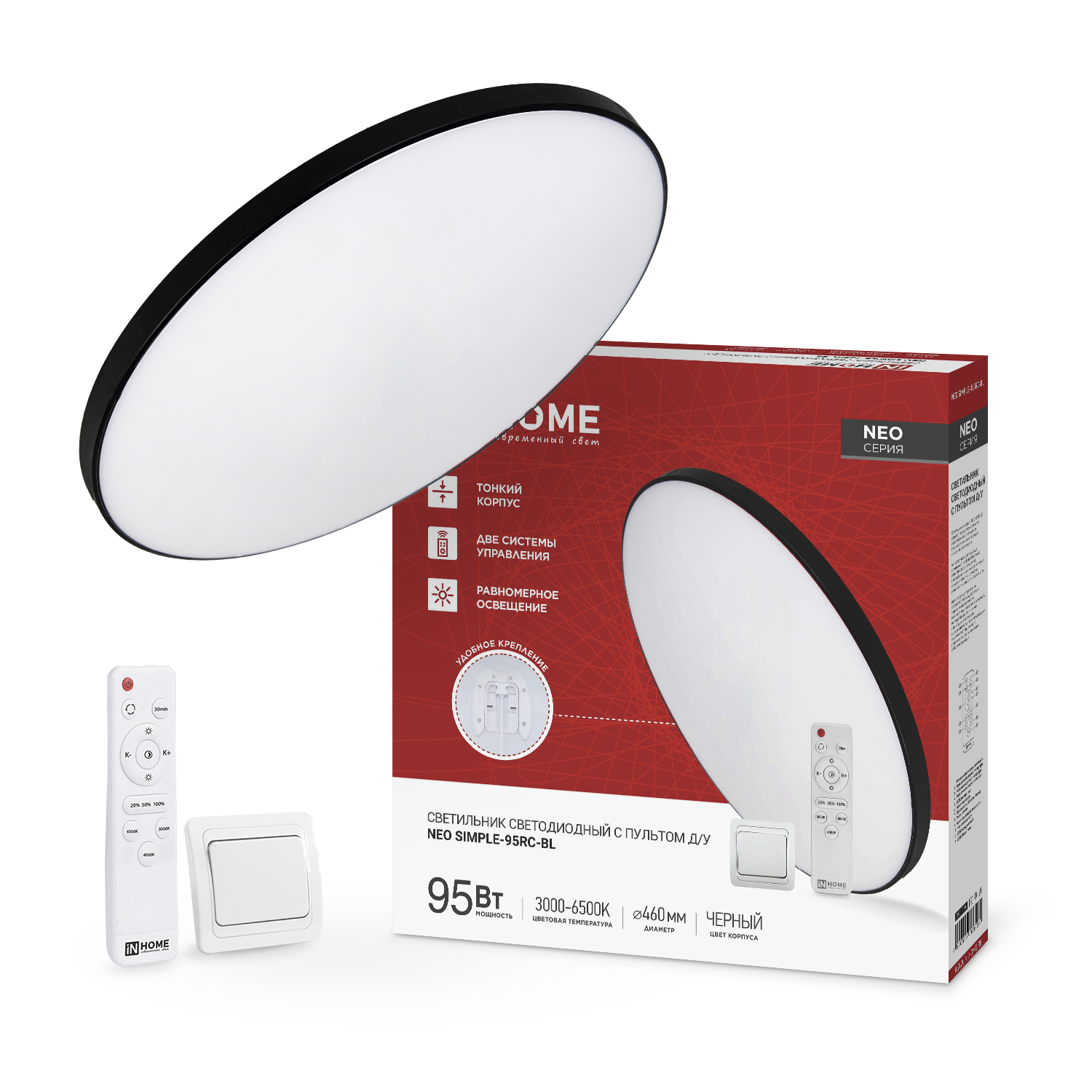 Светильник светодиодный NEO SIMPLE-95RC-BL 95Вт 230В 3000-6500K 7600Лм 460x67мм с пультом ДУ черный IN HOME