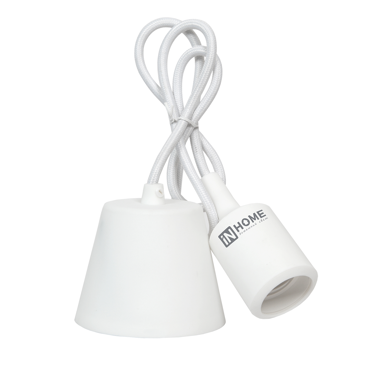 Патрон Е27 силиконовый со шнуром 1м белый IN HOME