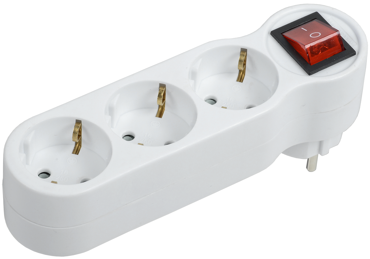 Тройник Т-01/03В 3 места 2P+PE 16А с выключателем белый IEK