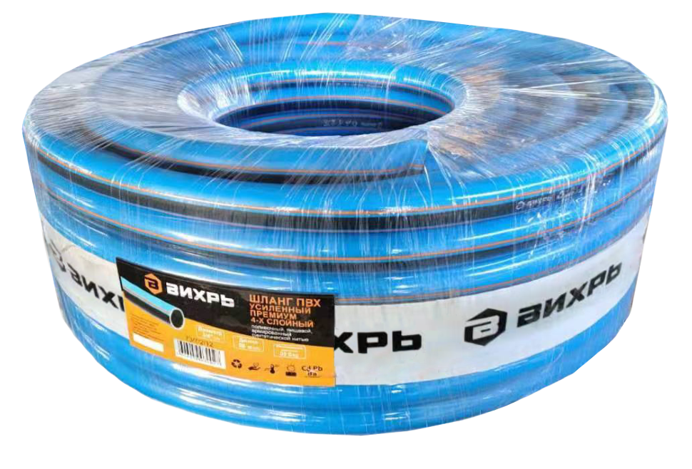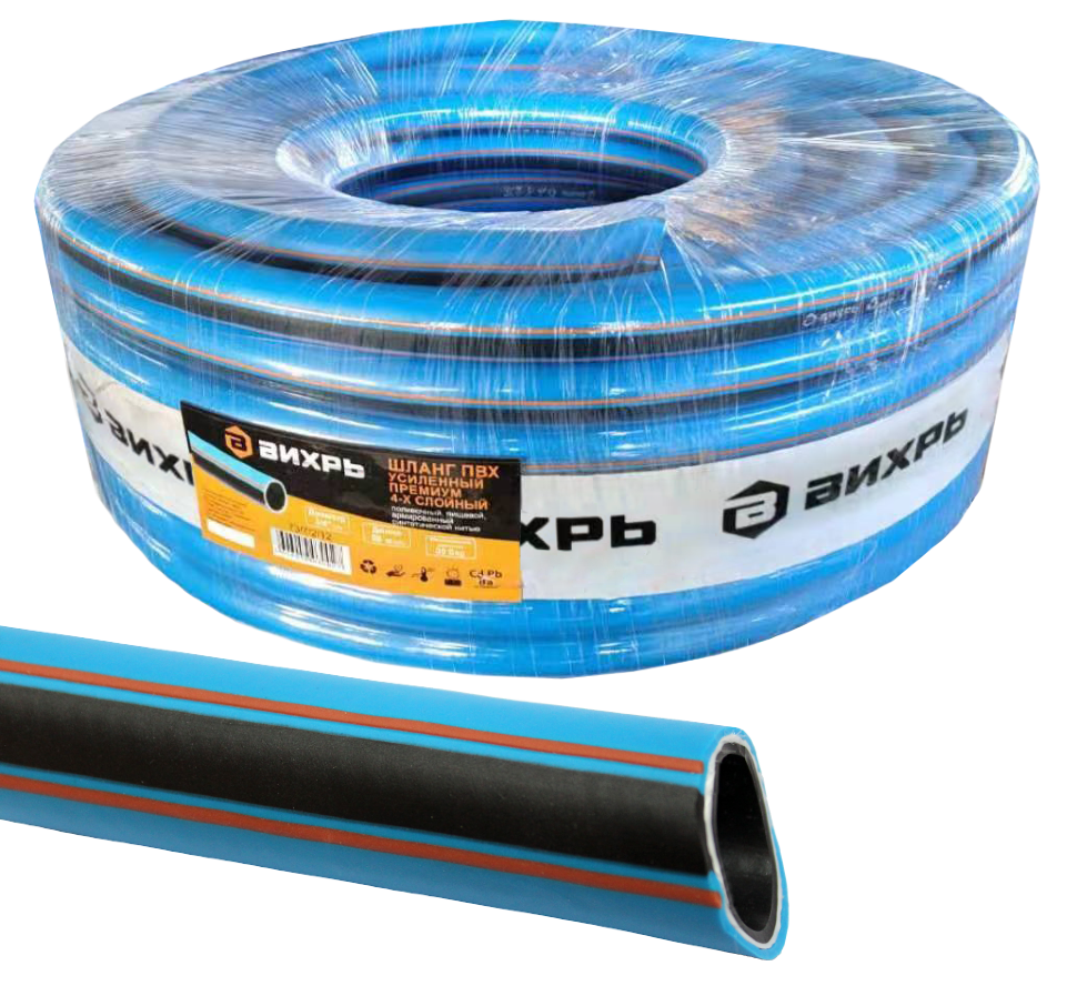 Шланг поливочный ПВХ усиленный премиум,пищевой четырехслойный армированный 3/4, 50м Вихрь