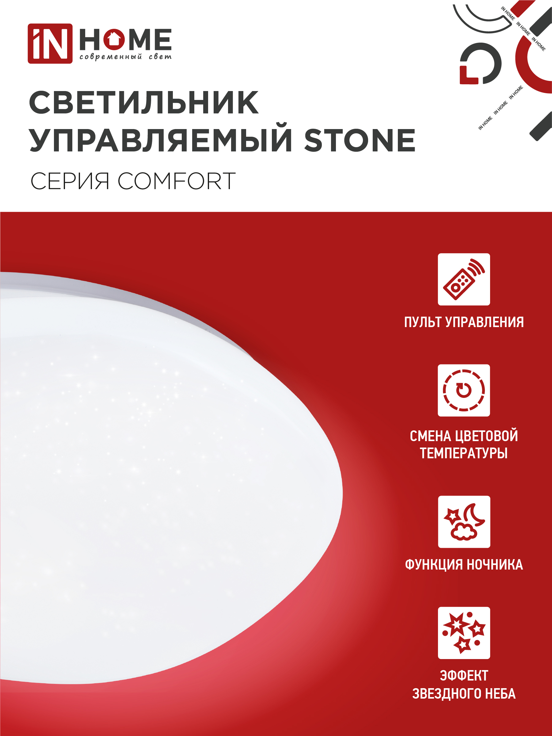 Светильник светодиодный COMFORT STONE 55Вт 230В 3000-6500K 4400Лм 430x100 с пультом ДУ IN HOME