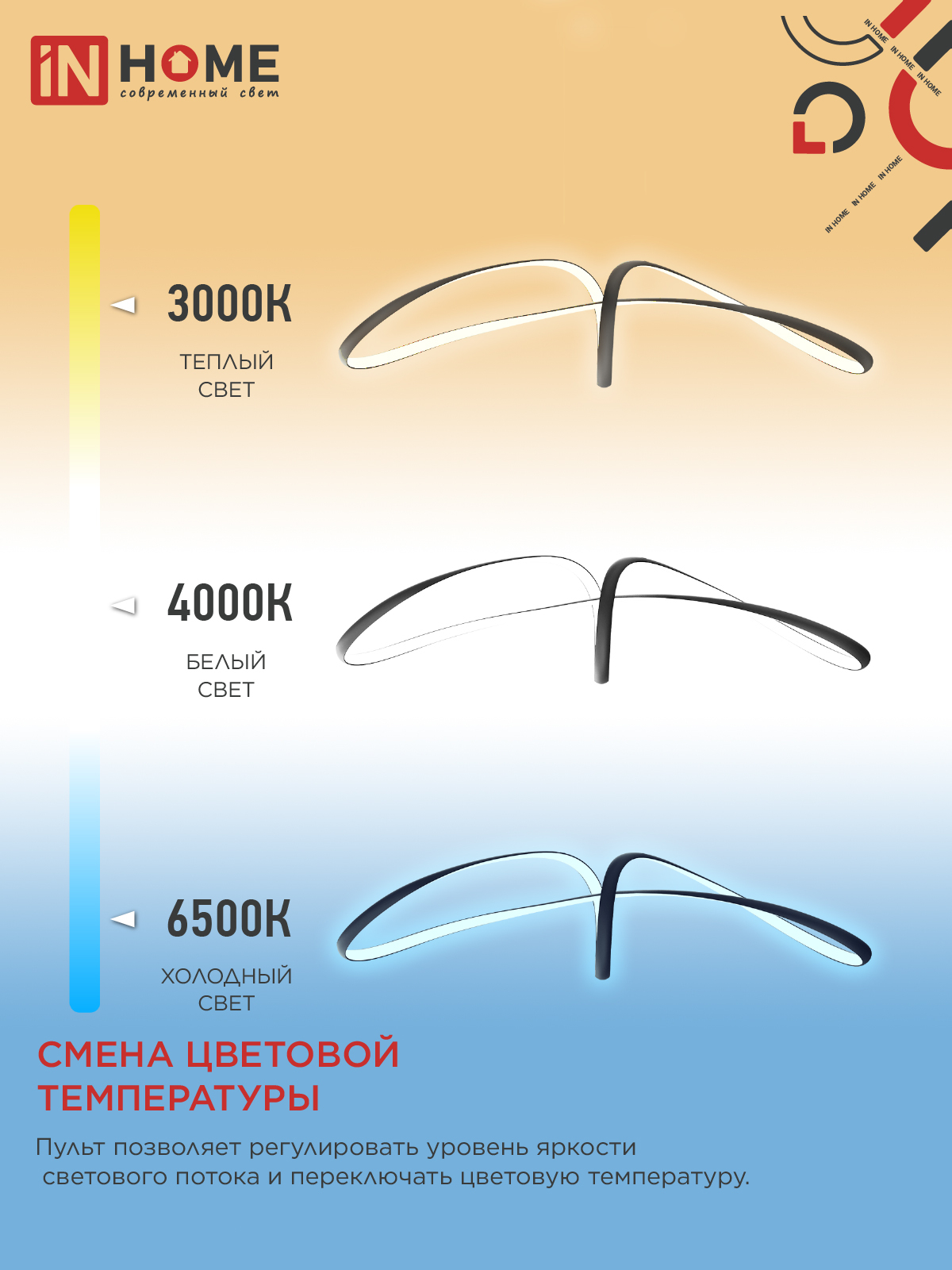 Две системы управления позволяют последовательно переключать цветовую температуру в режимах холодный, теплый, белый или ночник с помощью настенного выключателя или воспользоваться пультом дистанционного управления (ДУ) с широким набором функций.