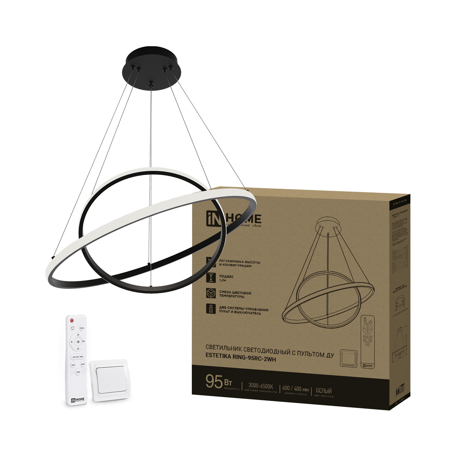 Светильник светодиодный ESTETIKA RING-95RC-2BL 95Вт 230В 3000-6500K 600/400 1.2м трос пульт ДУ черный IN HOME