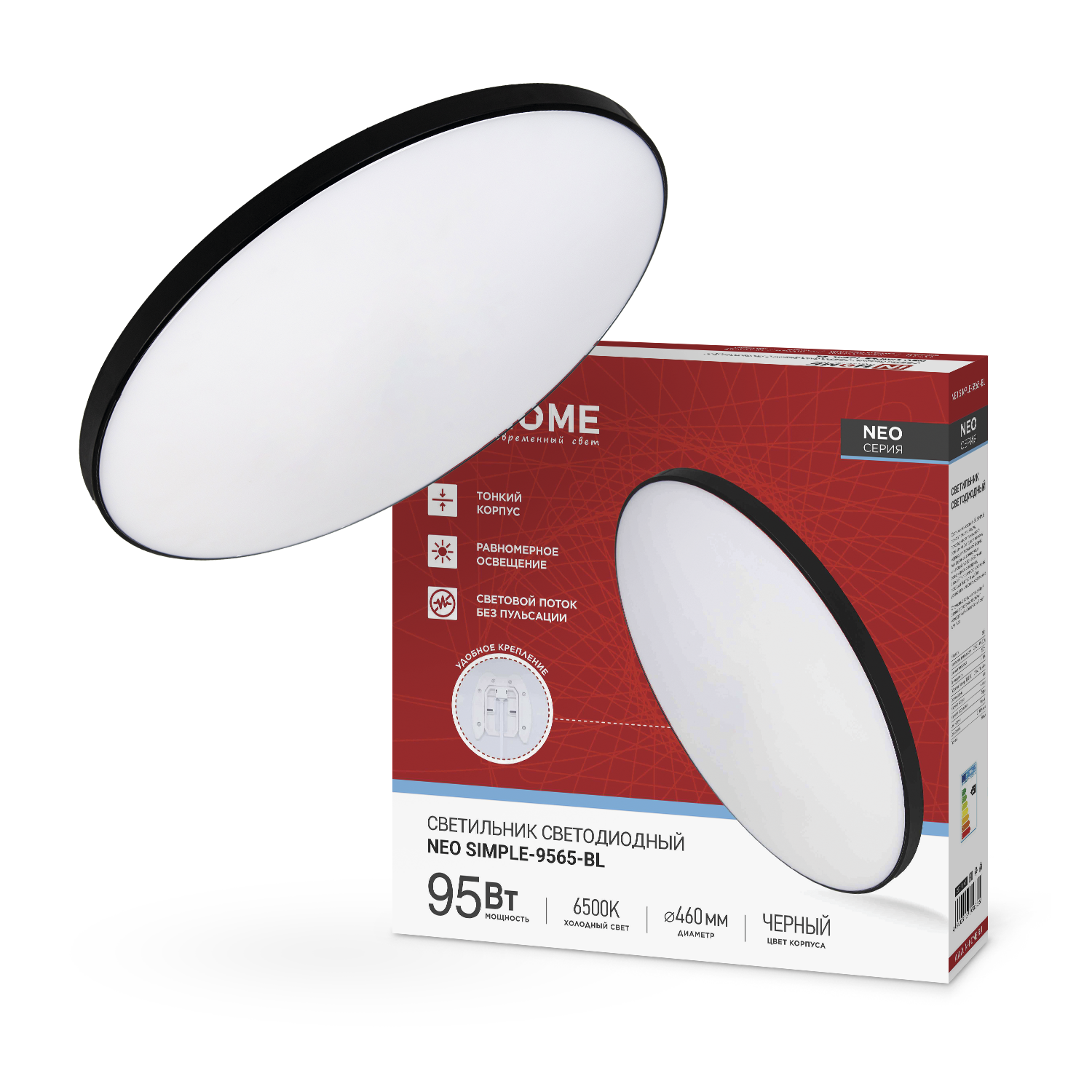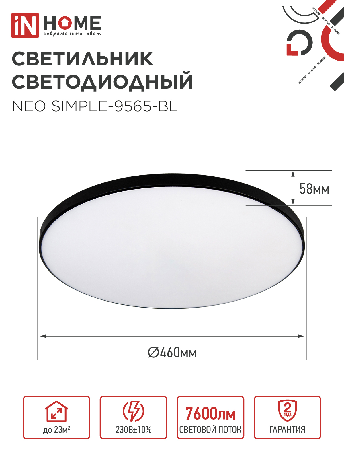 Светильник светодиодный NEO SIMPLE-9565-BL 95Вт 230В 6500K 7600Лм 460x67мм черный IN HOME