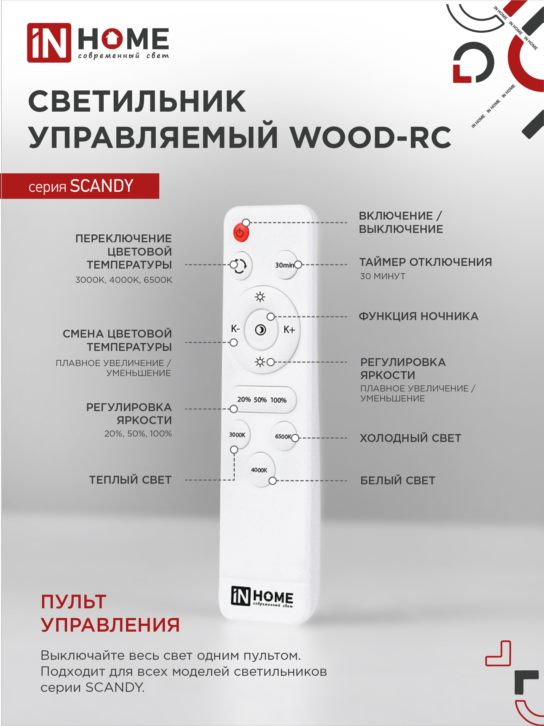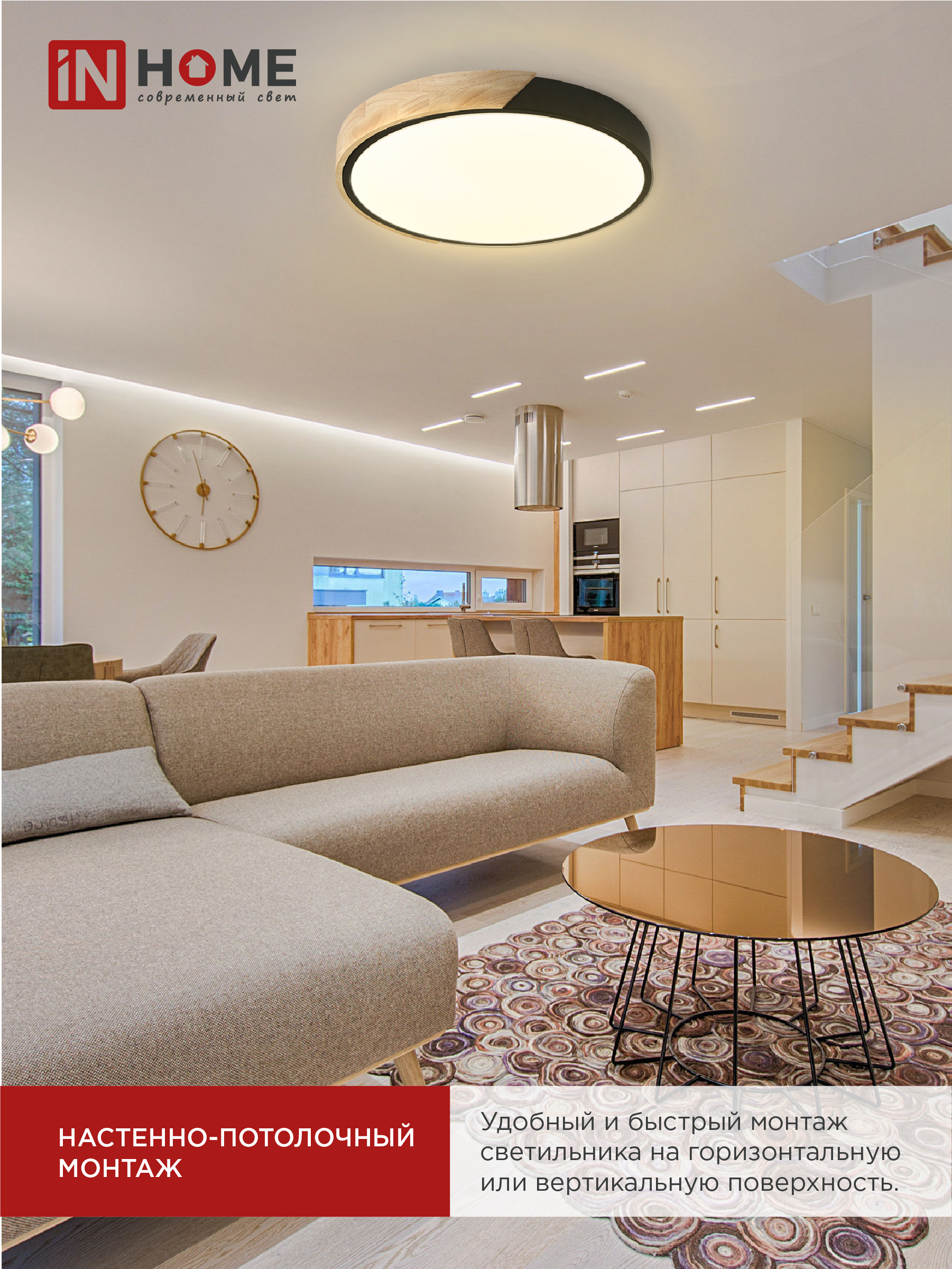 Светильник светодиодный SCANDY WOOD-120RCB 120Вт 230В 3000-6500K 9600Лм 500x50мм с пультом ДУ черный IN HOME