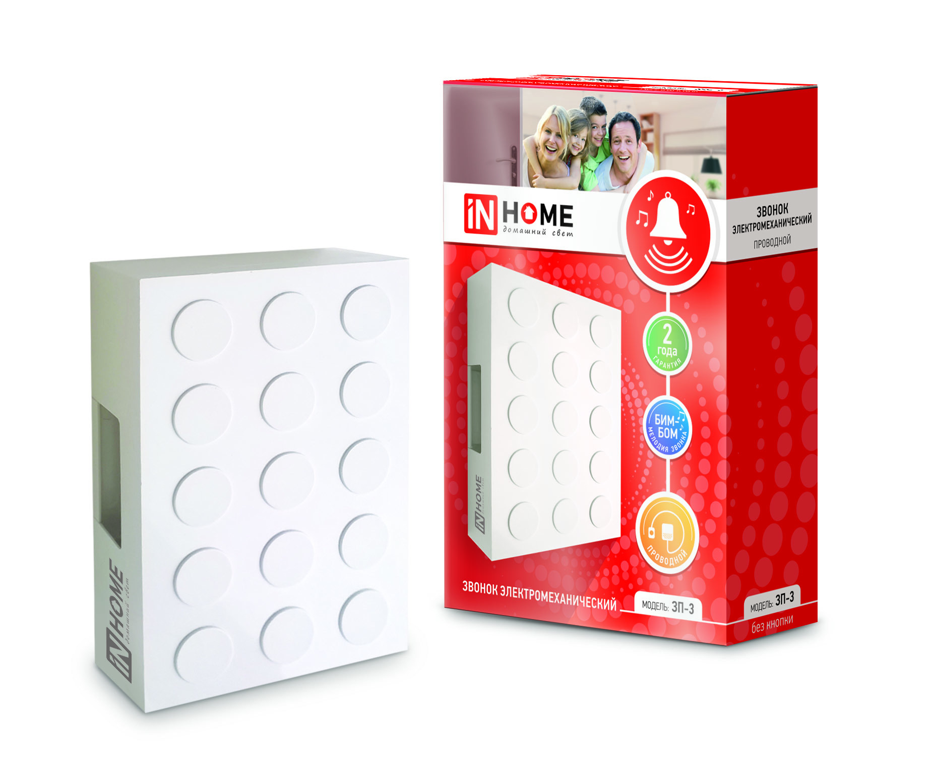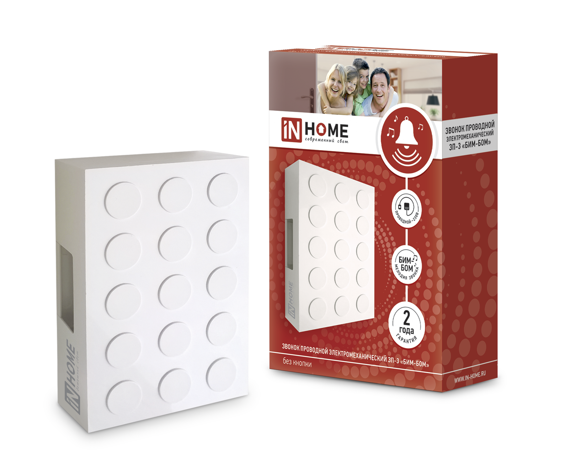 Звонок проводной электромеханический ЗП-3 Бим-Бом БЕЛЫЙ IN HOME