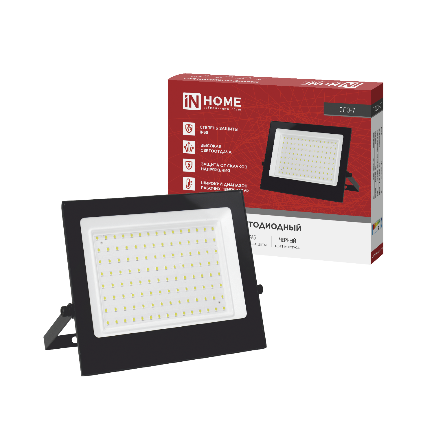 Прожектор светодиодный СДО-7 100Вт 230В 4000К IP65 черный IN HOME