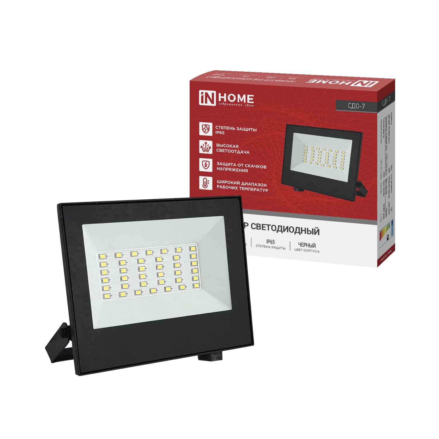 Прожектор светодиодный СДО-7 50Вт 230В 4000К IP65 черный IN HOME