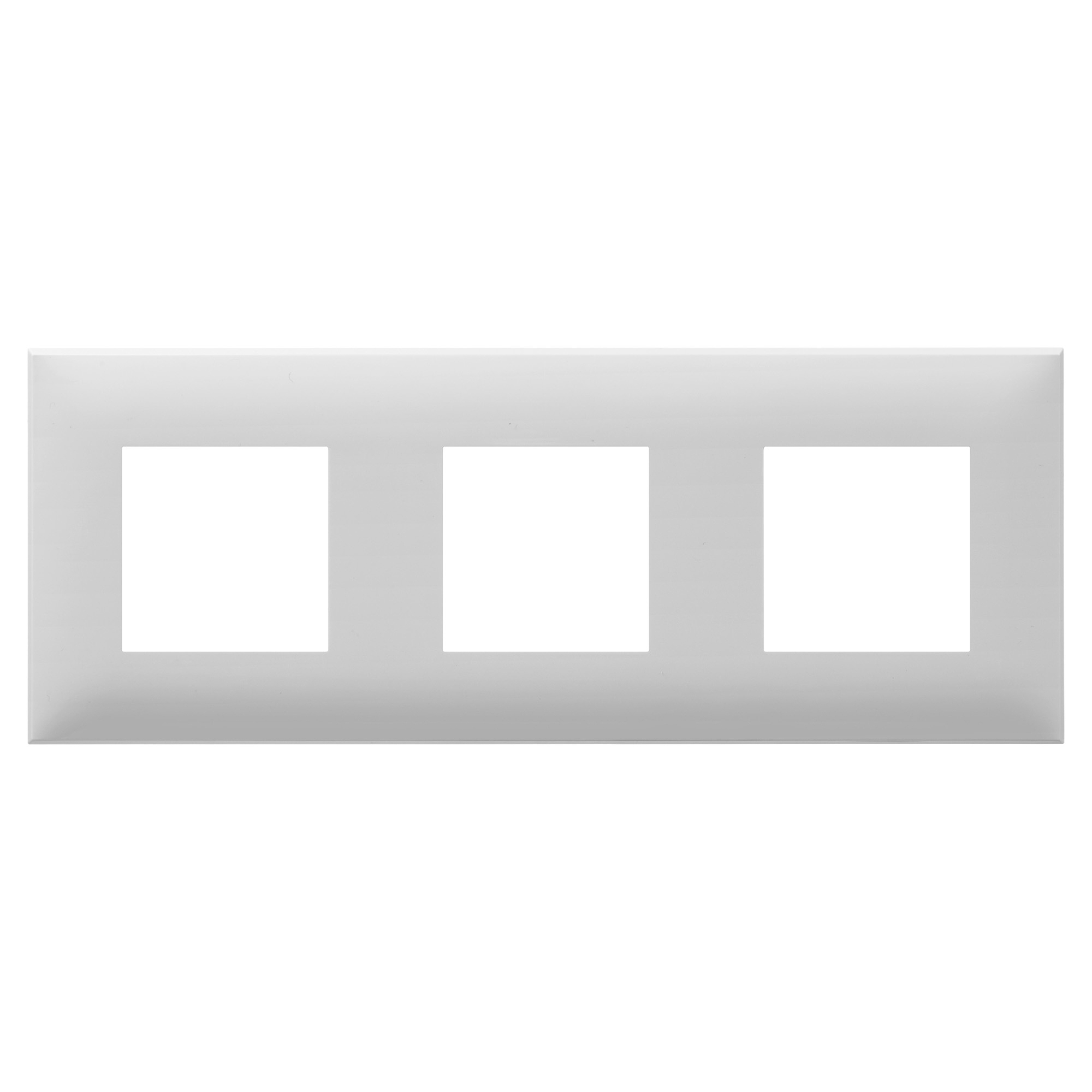 Рамка имеет 3 места под электроустановочные изделия (максимальная вместимость – 6 модулей), может размещаться как горизонтально, так и вертикально. Габаритные размеры: 235х90 мм. Материал – термопласт.
