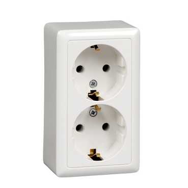 Розетка двойная ХИТ SE накладная с изоляционной пластиной с заземлением белая
