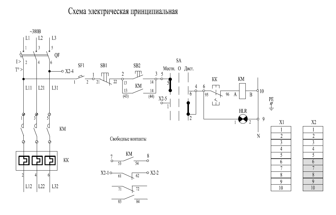 Предназначен для управления асинхронным двигателем. Предусмотрено местное и дистанционное управление с возможностью добавления датчиков (конечные выключатели и т.д.).