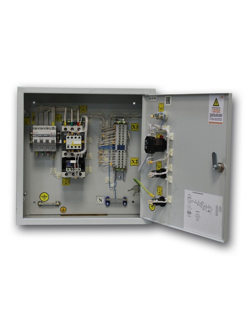 Предназначен для управления асинхронным двигателем. Предусмотрено местное и дистанционное управление с возможностью добавления датчиков (конечные выключатели и т.д.).