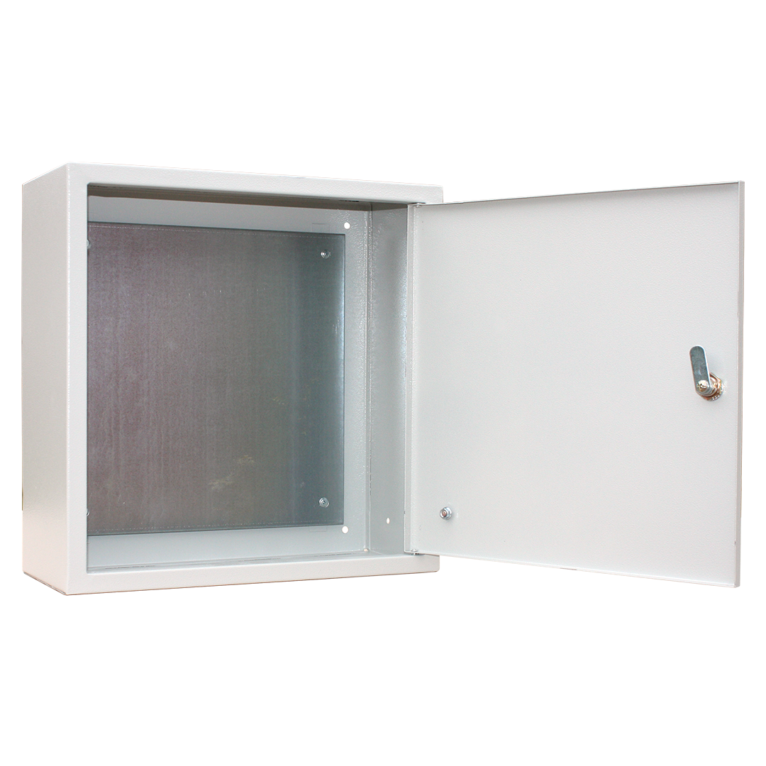 Комплектация - замок, 2 ключа, оцинкованная монтажная панель, знаки электробезопасности;