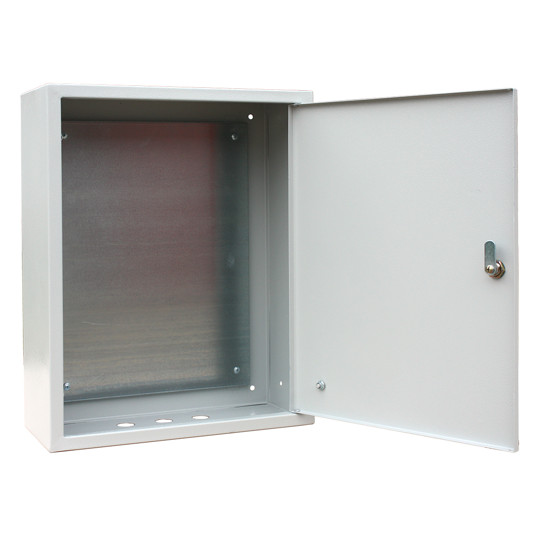 Комплектация – замок, 2 ключа, оцинкованная монтажная панель, знаки электробезопасности;
