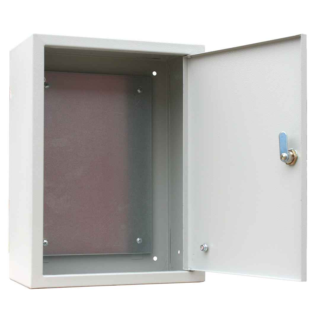 Комплектация – замок, 2 ключа, оцинкованная монтажная панель, знаки электробезопасности;