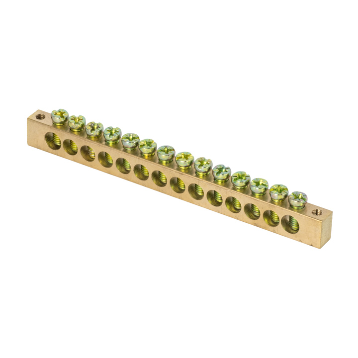 Шина PEN "ноль-земля" (8х12мм) 14 отверстий латунь крепеж по краям EKF PROxima