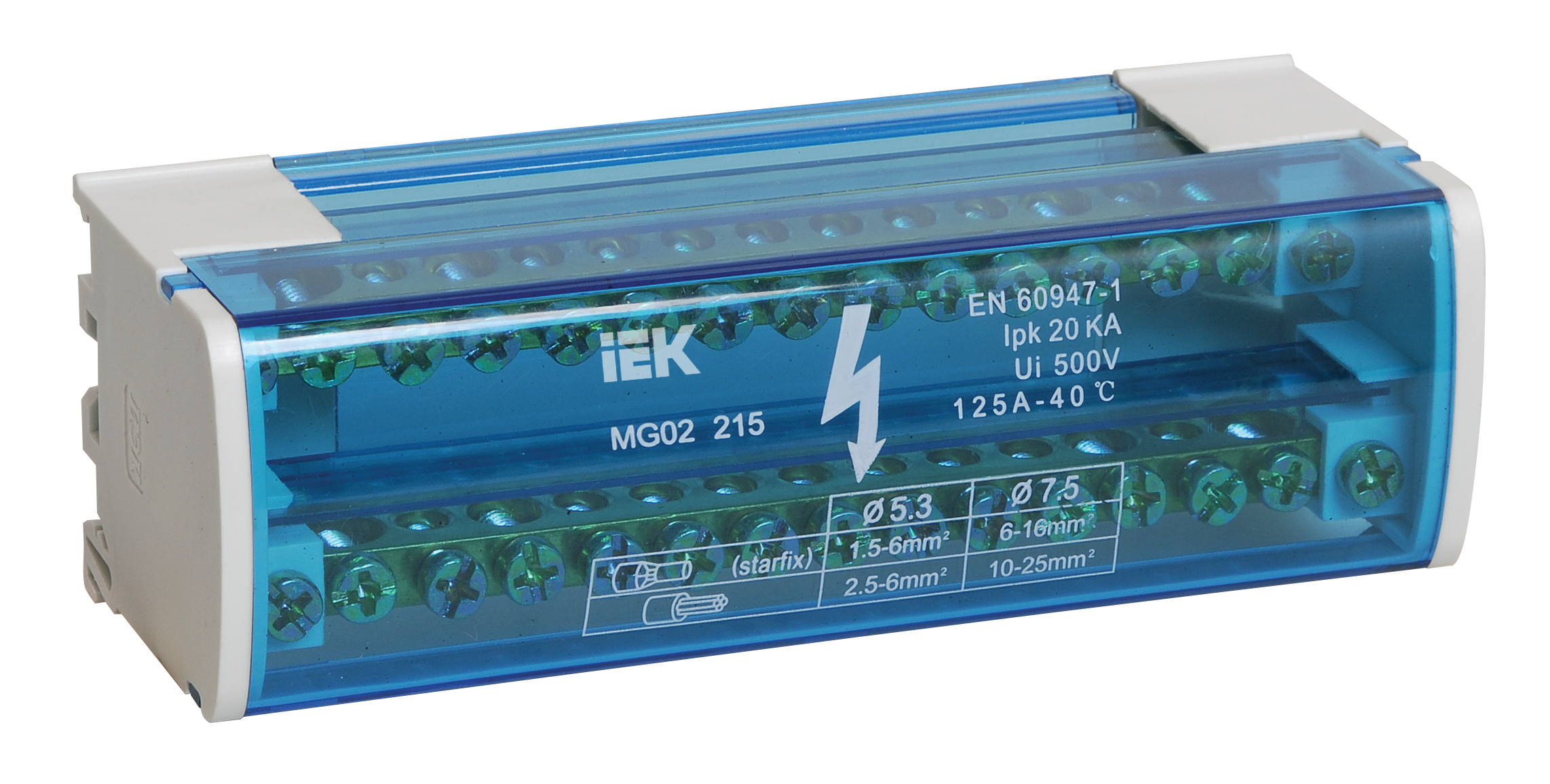 Шины IEK на DIN-рейку в корпусе (кросс-модуль) ШНК 2х15 L+PEN