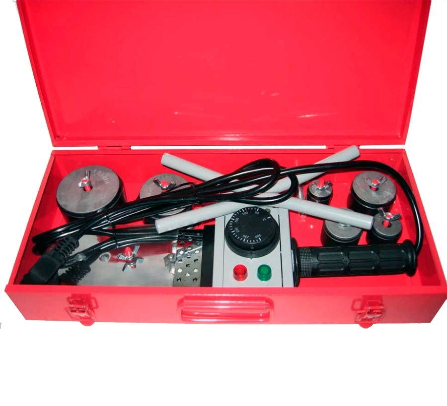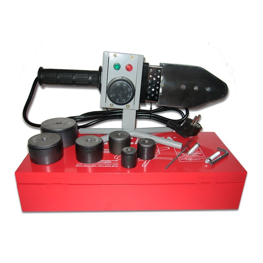 Прибор используется для сварки труб различного диаметра из большинства полимерных материалов. Он надежно соединяет конструкции без протечек в месте шва. Сварка выполняется в месте стыка и не требует применения дополнительных деталей. Насадки имеют антипригарное тефлоновое покрытие, обеспечивающее долгий срок службы. Аппарат оснащен индикатором подключения к сети и контроля температуры. Также предусмотрена подставка, на которую можно установить прибор при перерывах в работе. Есть удобный и вместительный металлический кейс.