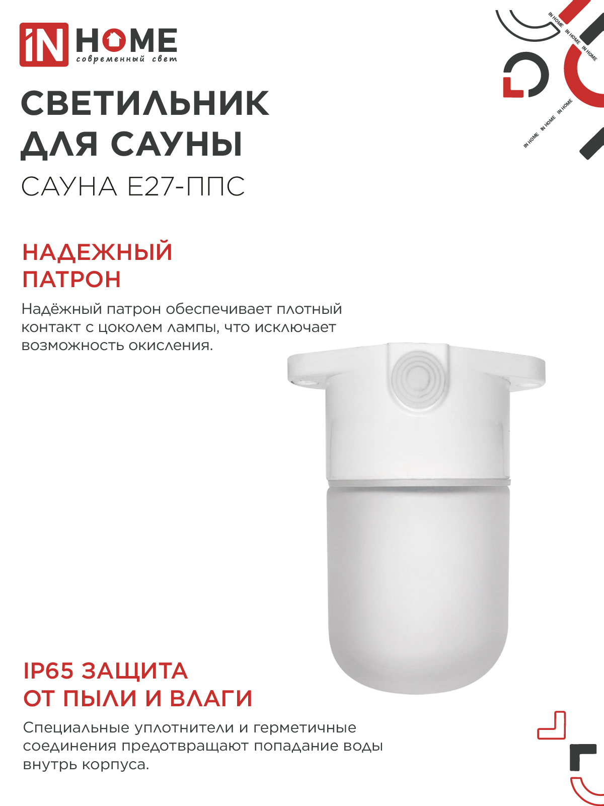 Светильник для сауны потолочный САУНА E27-ППС пластик, стекло IP65 110x138мм белый IN HOME