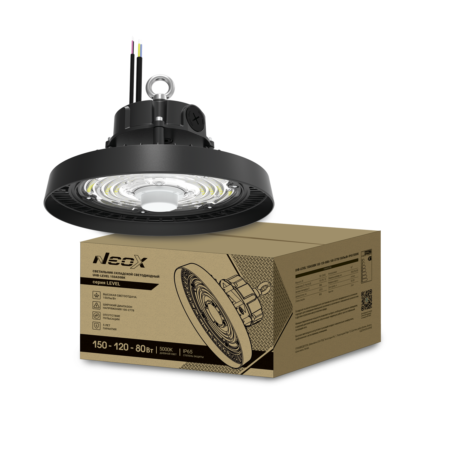 Светильник складской светодиодный UHB-LEVEL 150A50BK 150/120/80Вт 100-277В 22500Лм 150Лм/Вт 5000K 5 лет NEOX