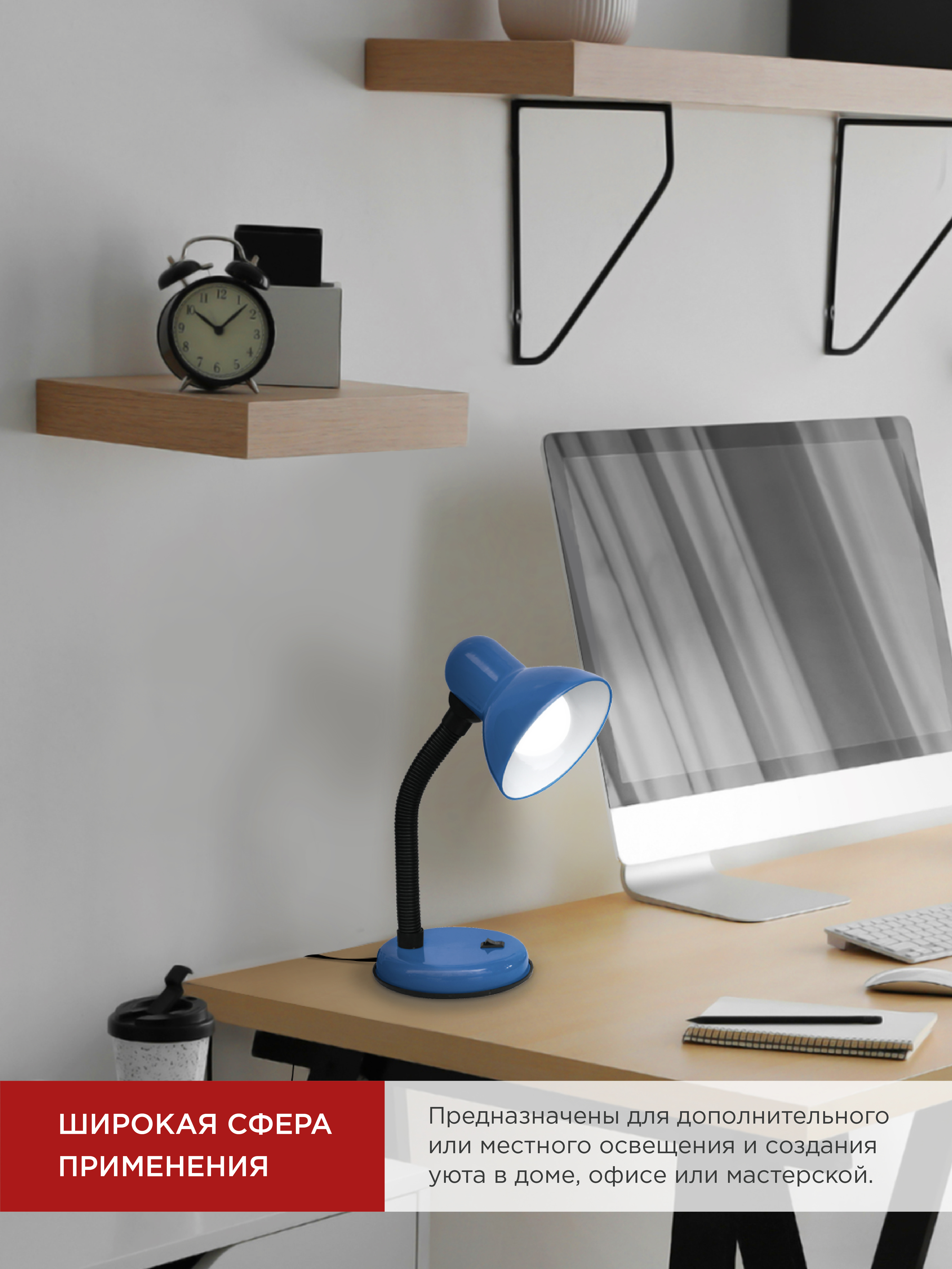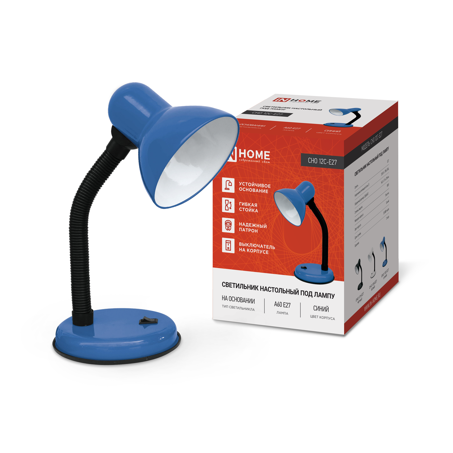 Светильник настольный под лампу на основании СНО 12С-E27 СИНИЙ (коробка) IN HOME