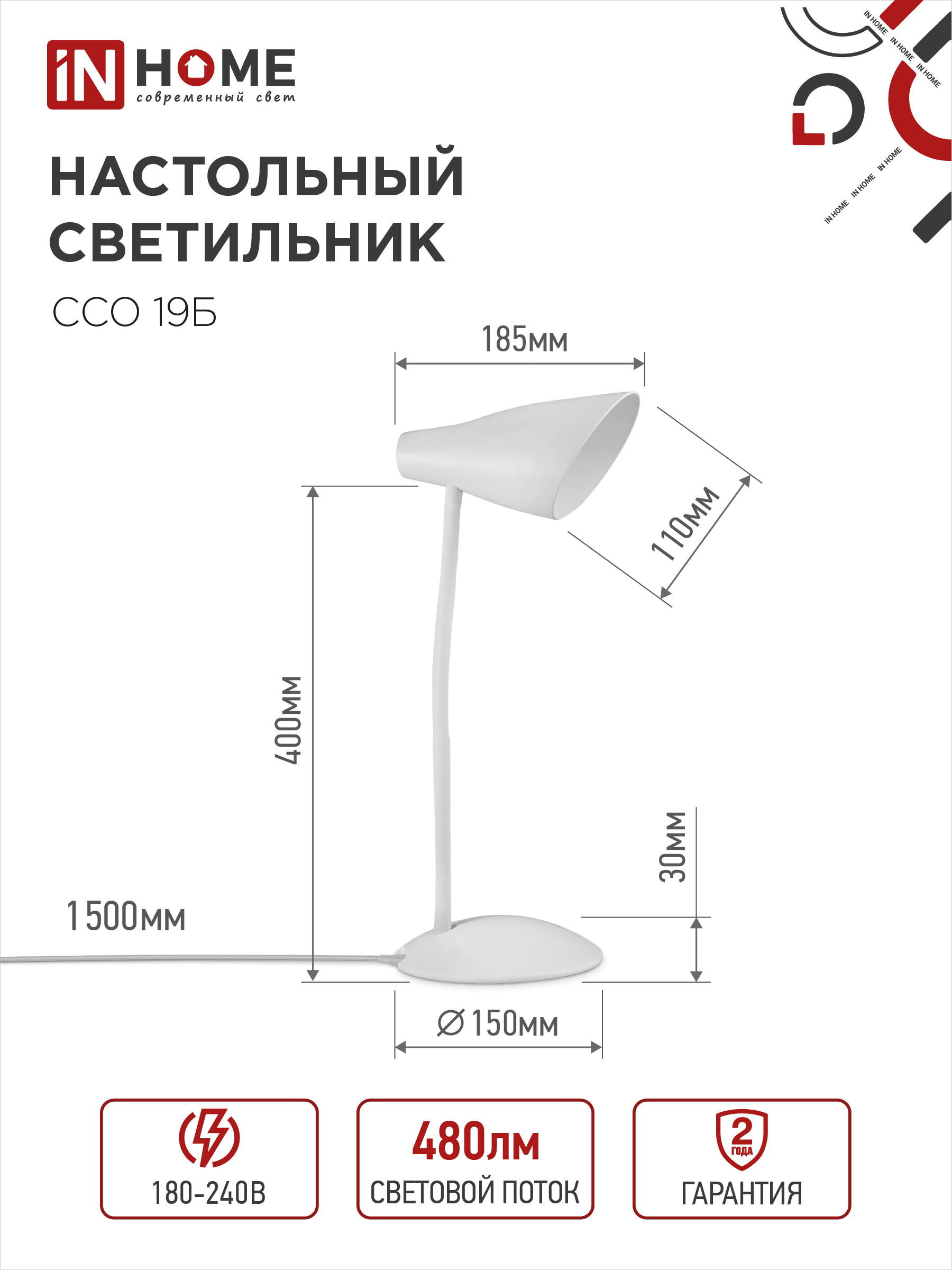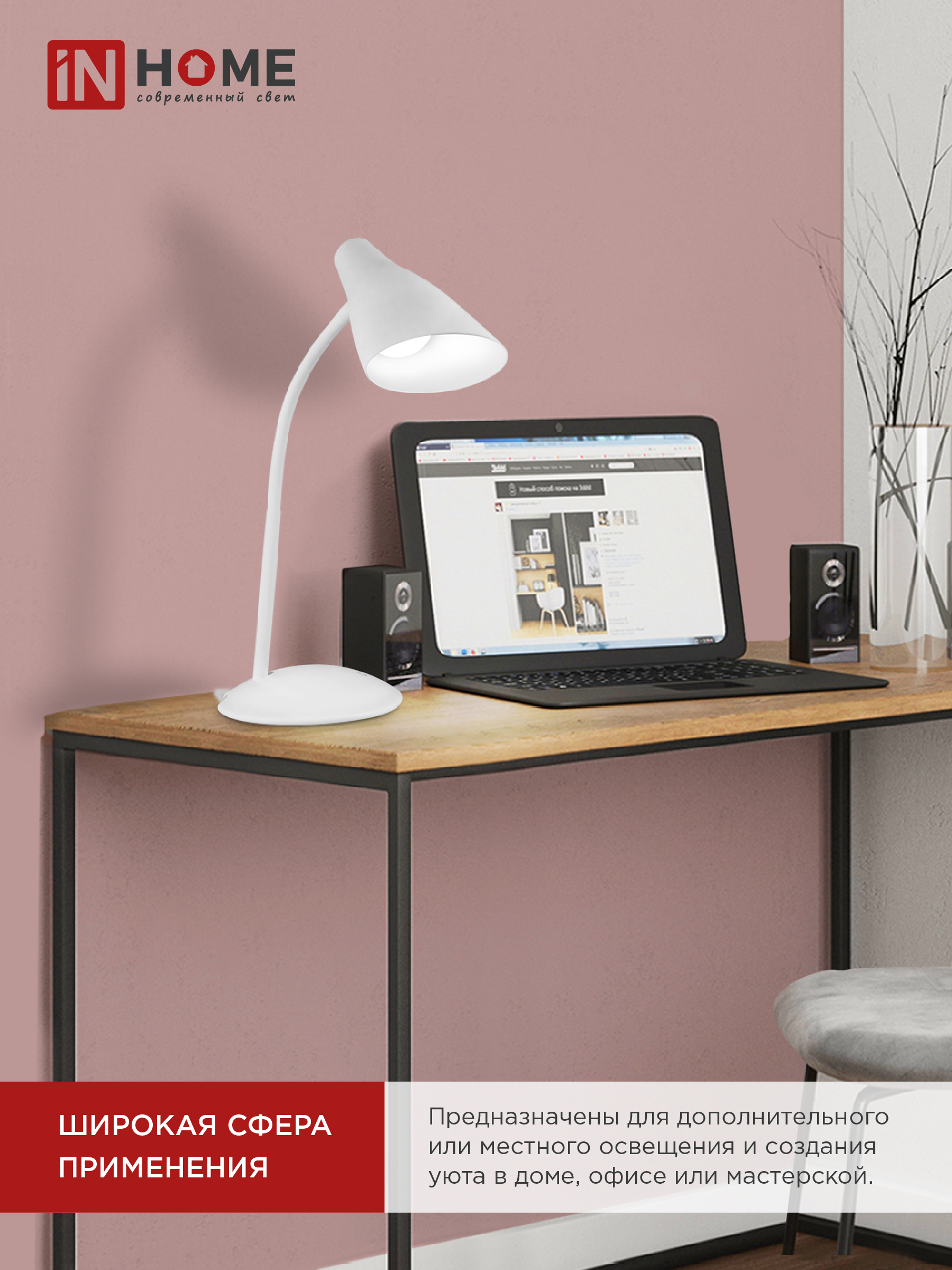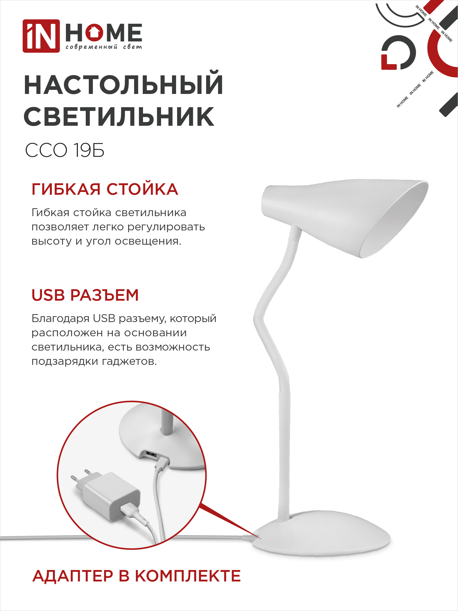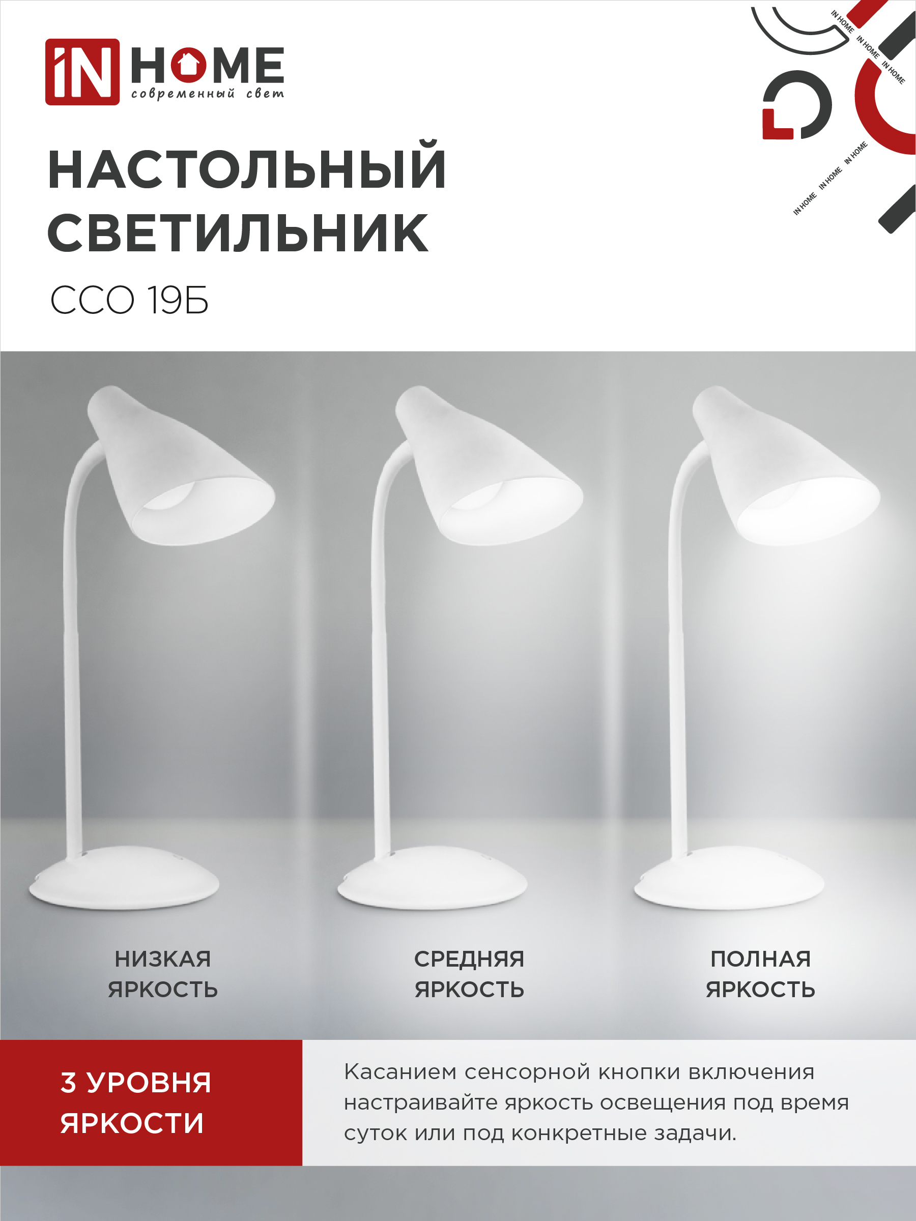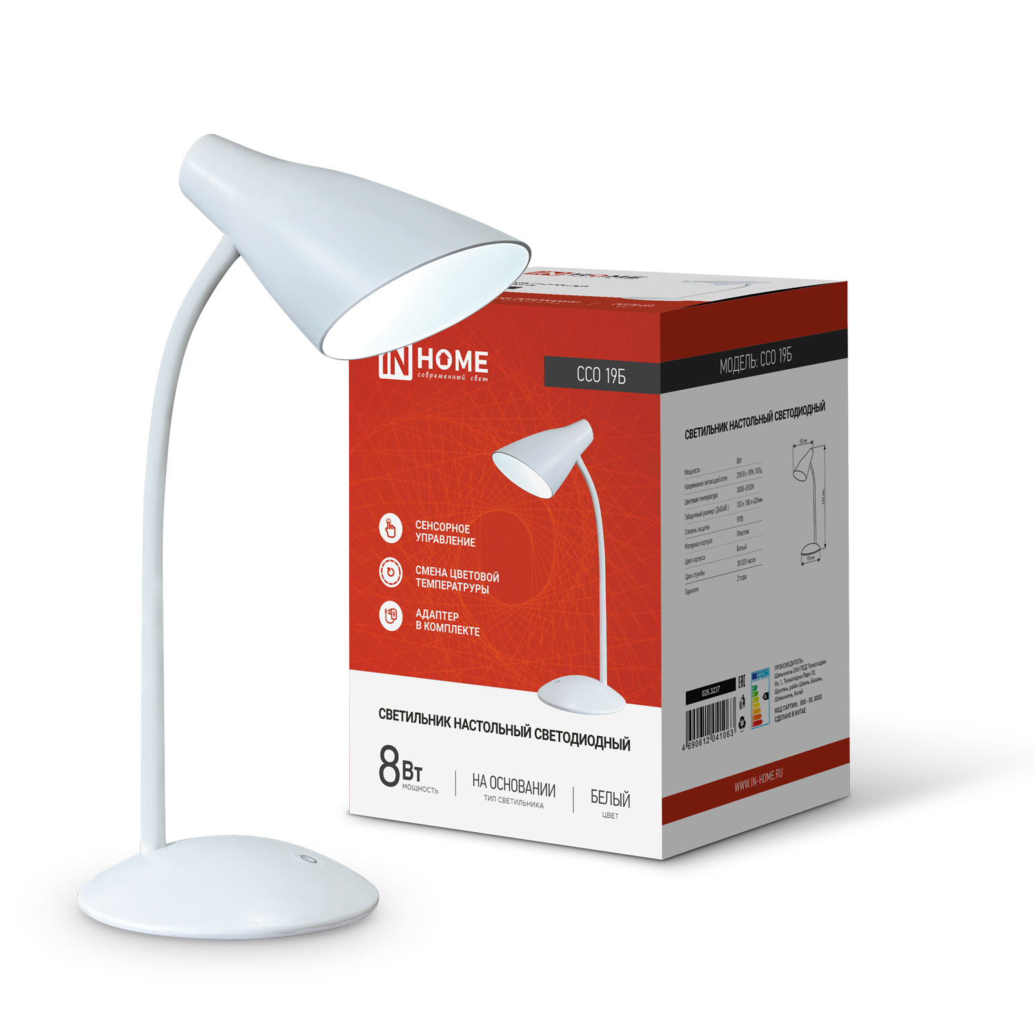 Светильник настольный светодиодный SIMPLE ССО-19Б 8Вт 6500К 480Лм сенсор, с адаптером БЕЛЫЙ IN HOME