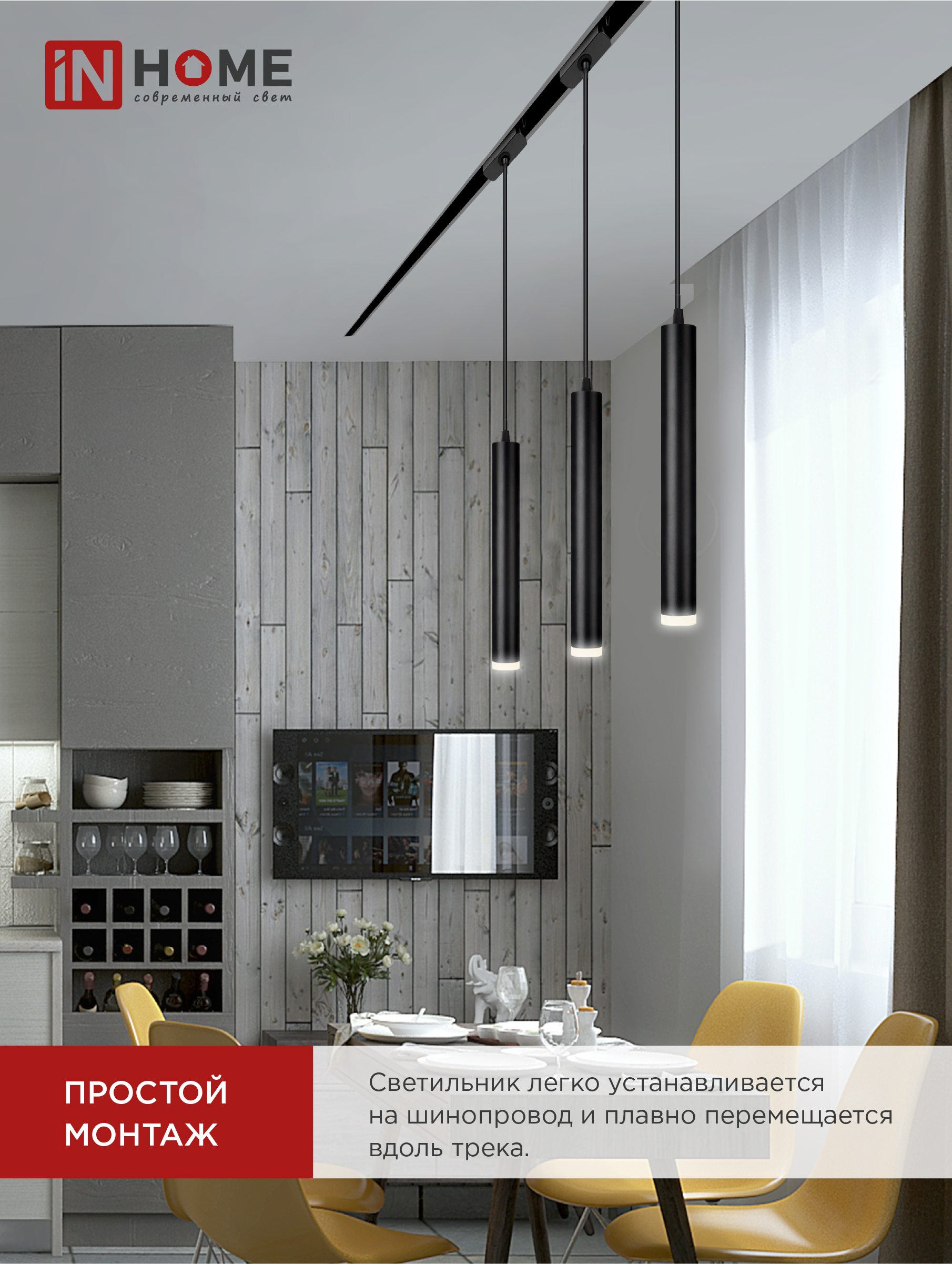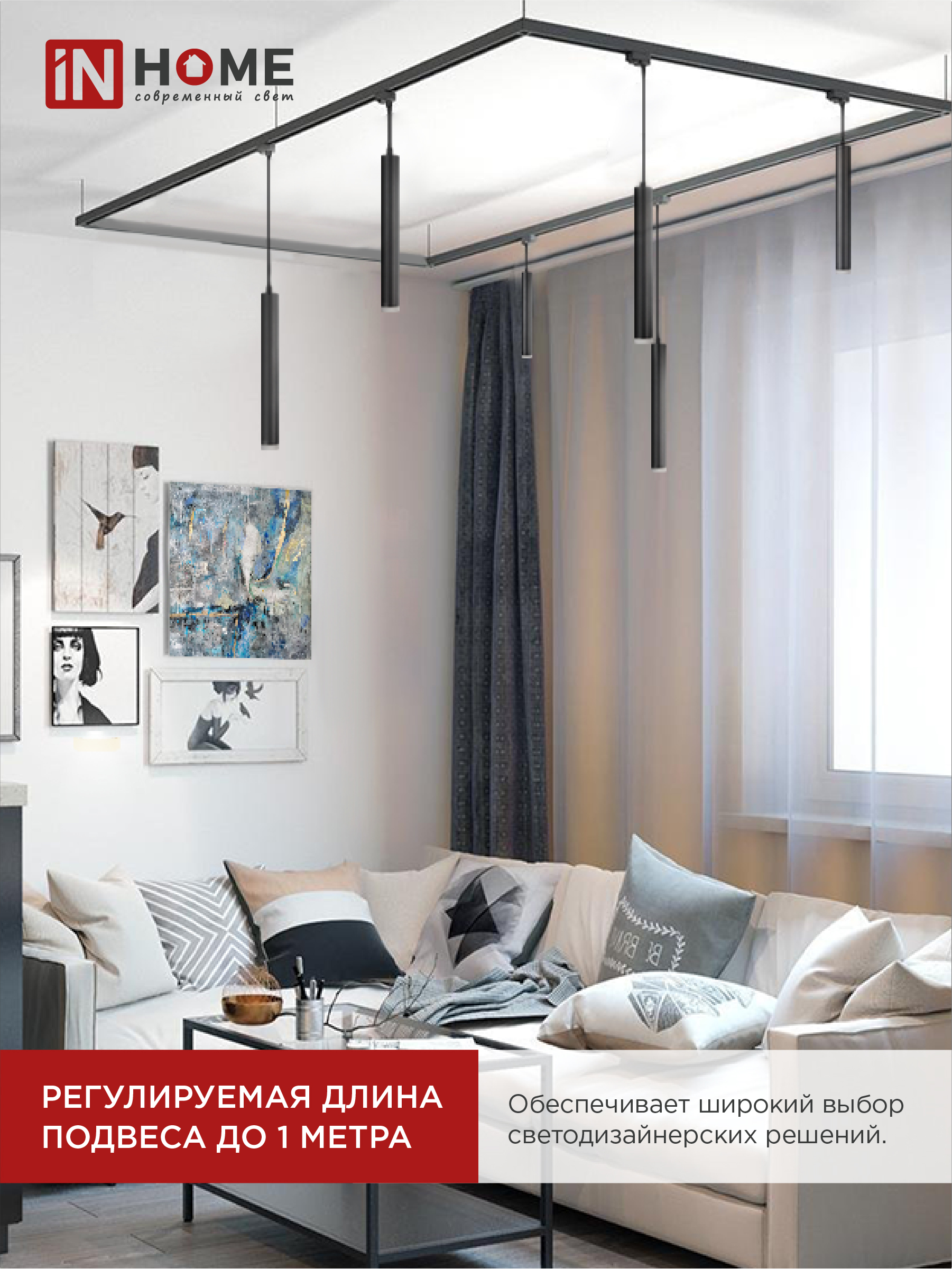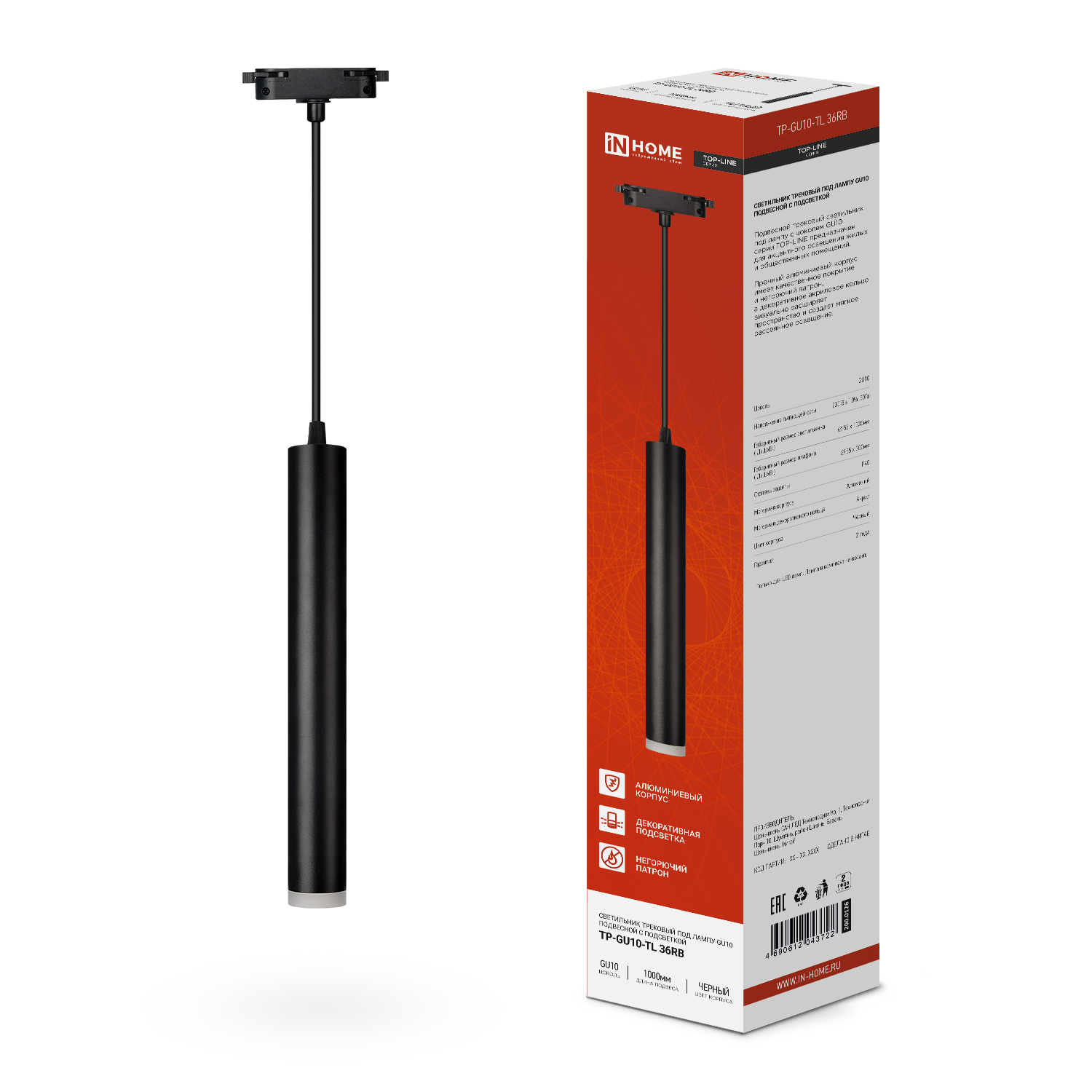 Светильник трековый подвесной TP-GU10-TL 36RB под лампу GU10 с подсветкой 300мм, шнур 1м, черный IN HOME
