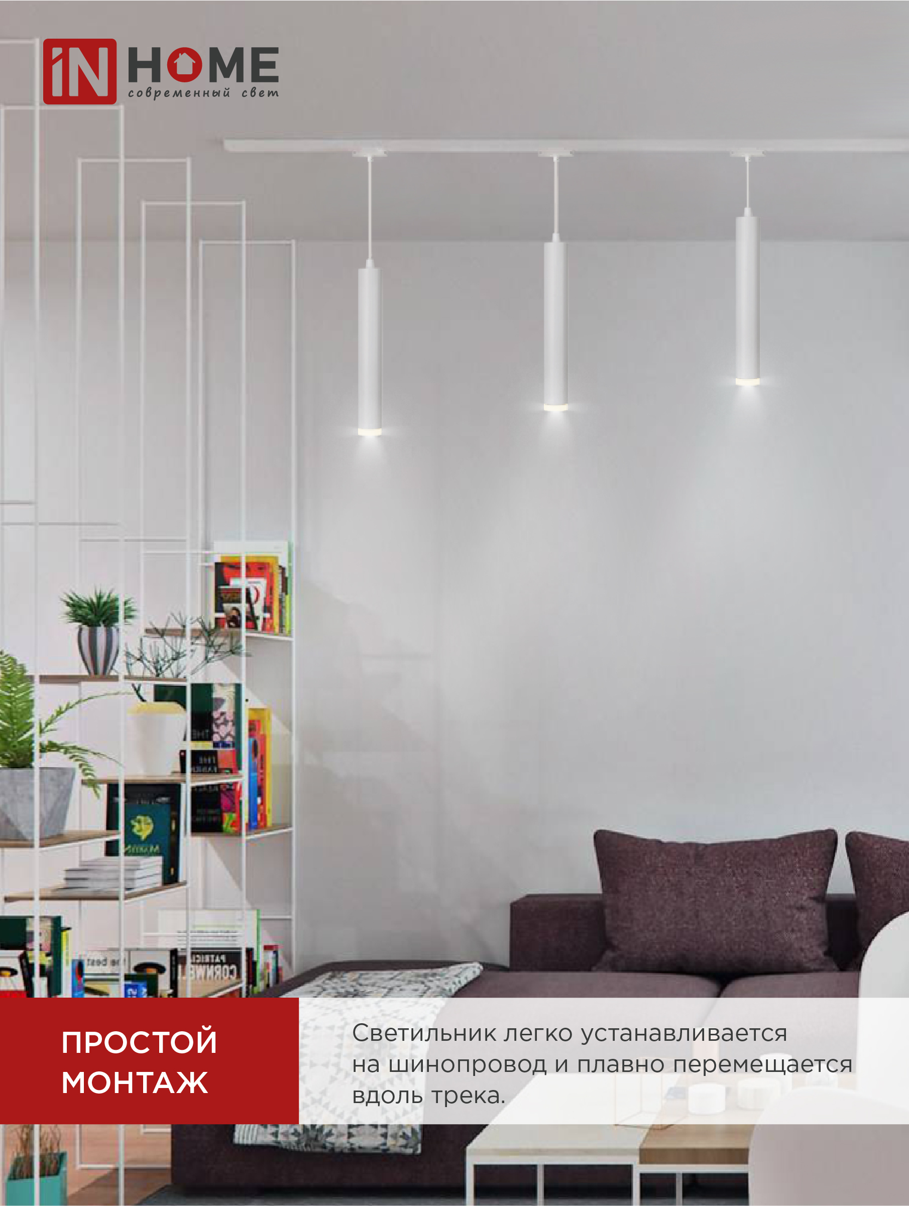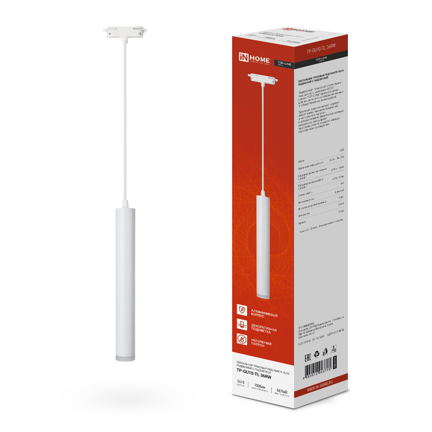 Светильник трековый подвесной TP-GU10-TL 36RW под лампу GU10 с подсветкой 300мм, шнур 1м, белый IN HOME