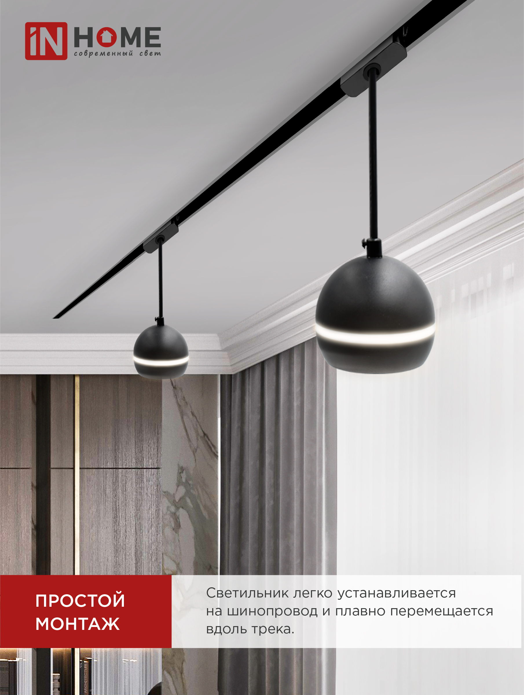 Светильник легко устанавливается и может свободно перемещаться по шинопроводу, что в сочетании с регулируемой длиной подвеса обеспечивает широкий выбор светодизайнерских решений.