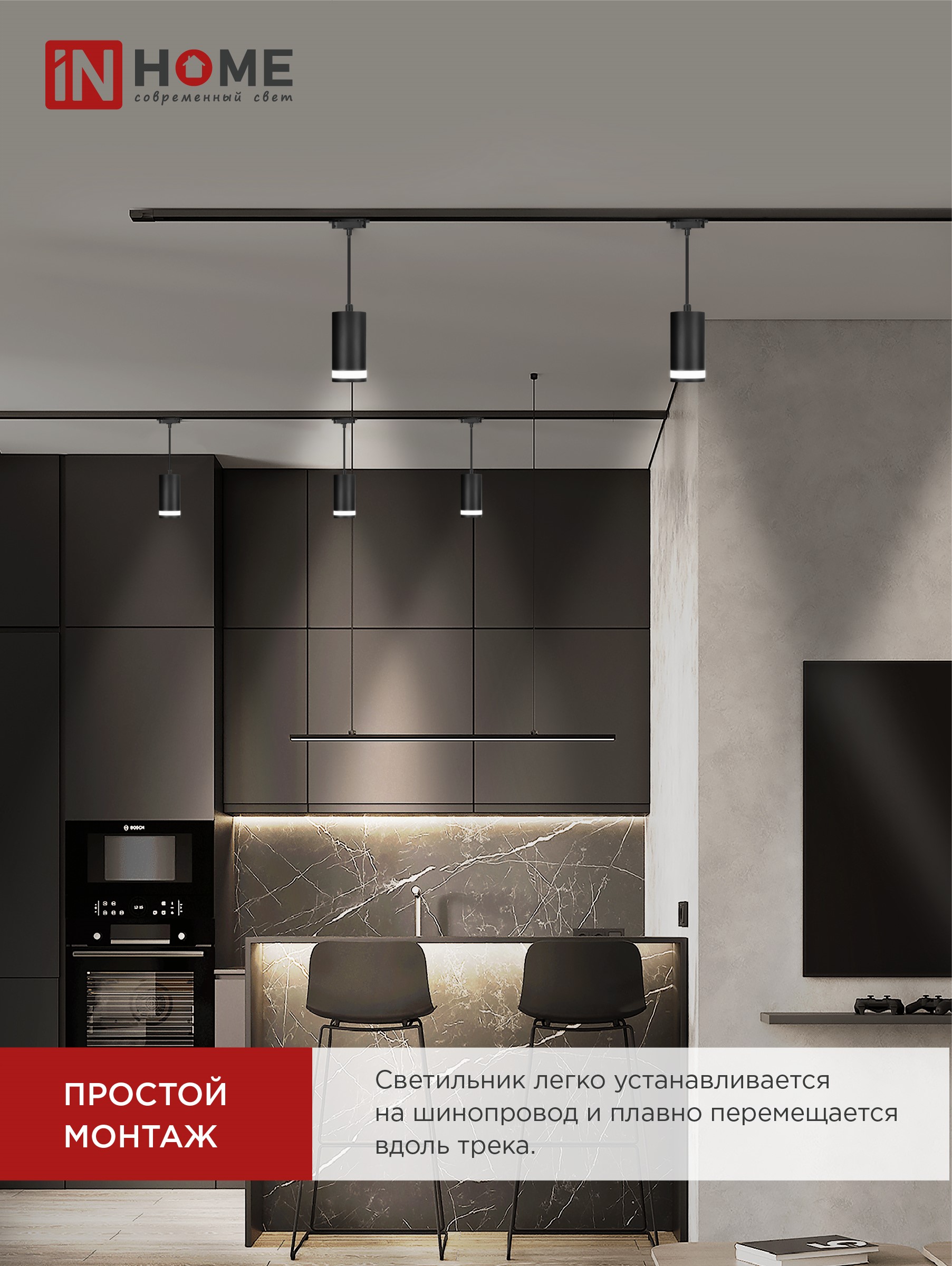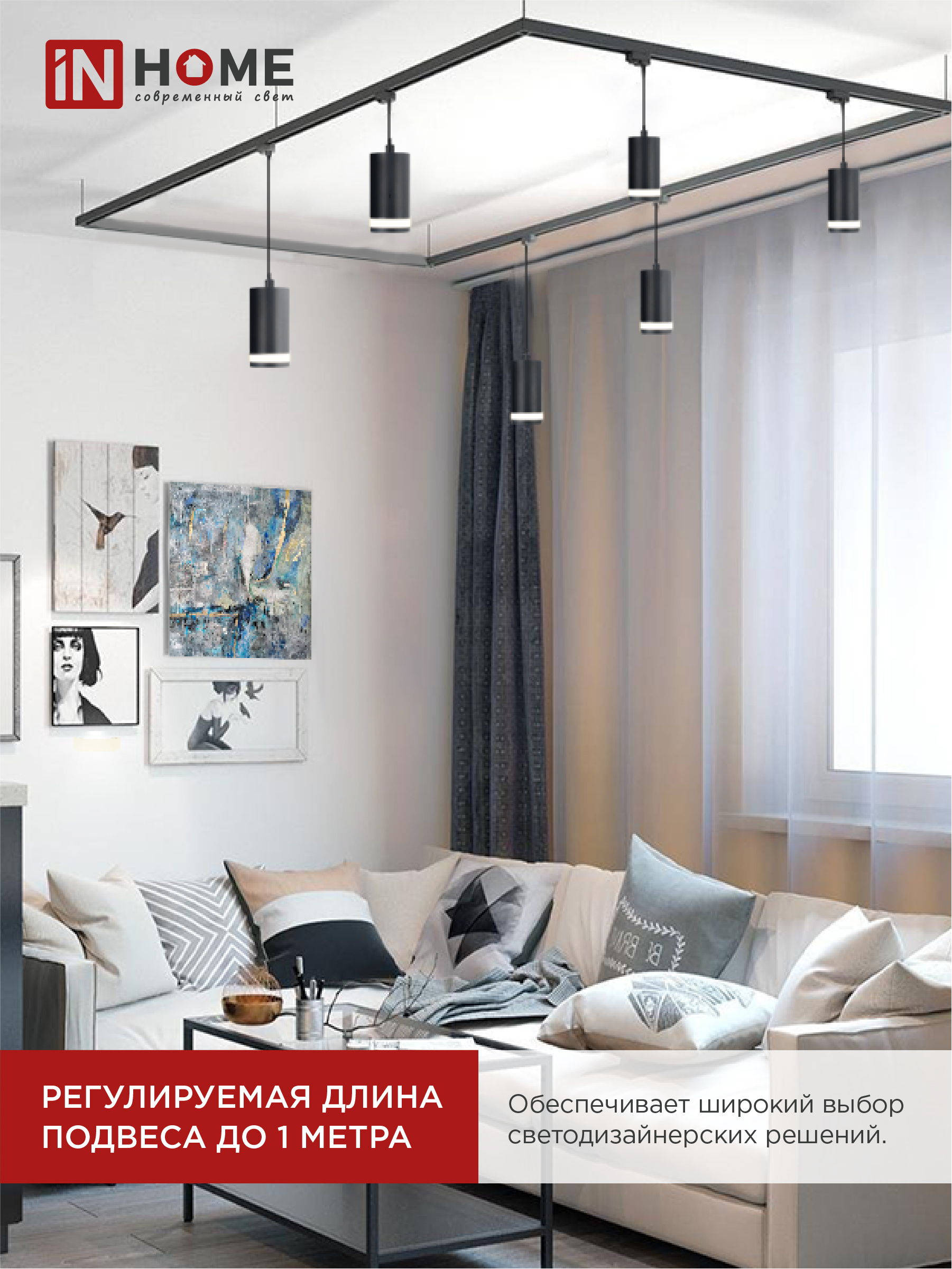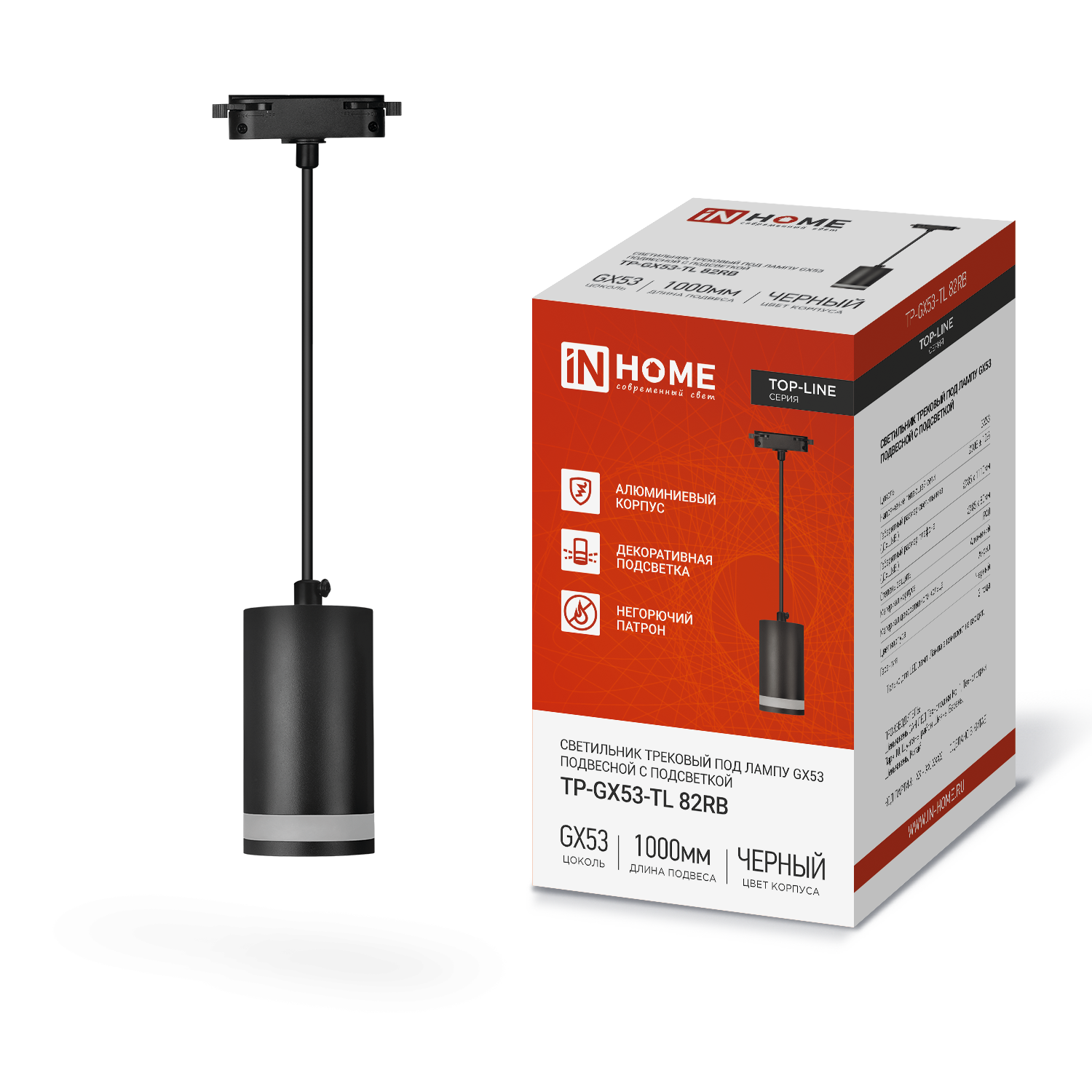 Светильник трековый подвесной TP-GX53-TL 82RB под лампу GX53 с подсветкой 80мм, шнур 1м, черный IN HOME