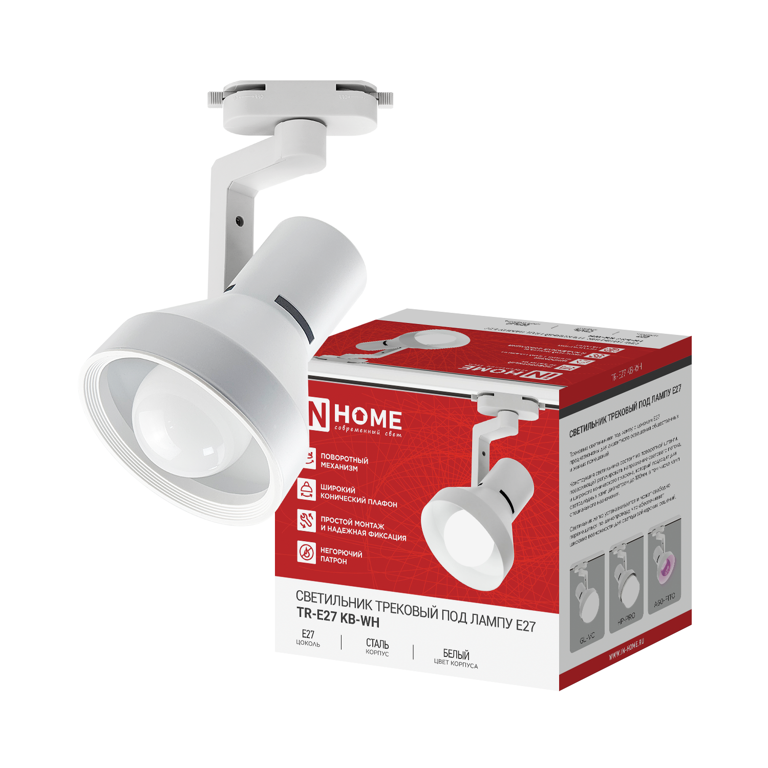 Светильник трековый TR-E27 KB-WH под E27 конус белый IN HOME